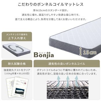 コイル同士が連結した構造のボンネルコイルにより、身体を面で支え、沈み込みすぎず安心した寝心地を実現します。