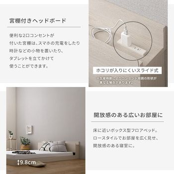 デザインフロアベッドはタブレットも立て掛けられる宮棚・2口コンセント付き!