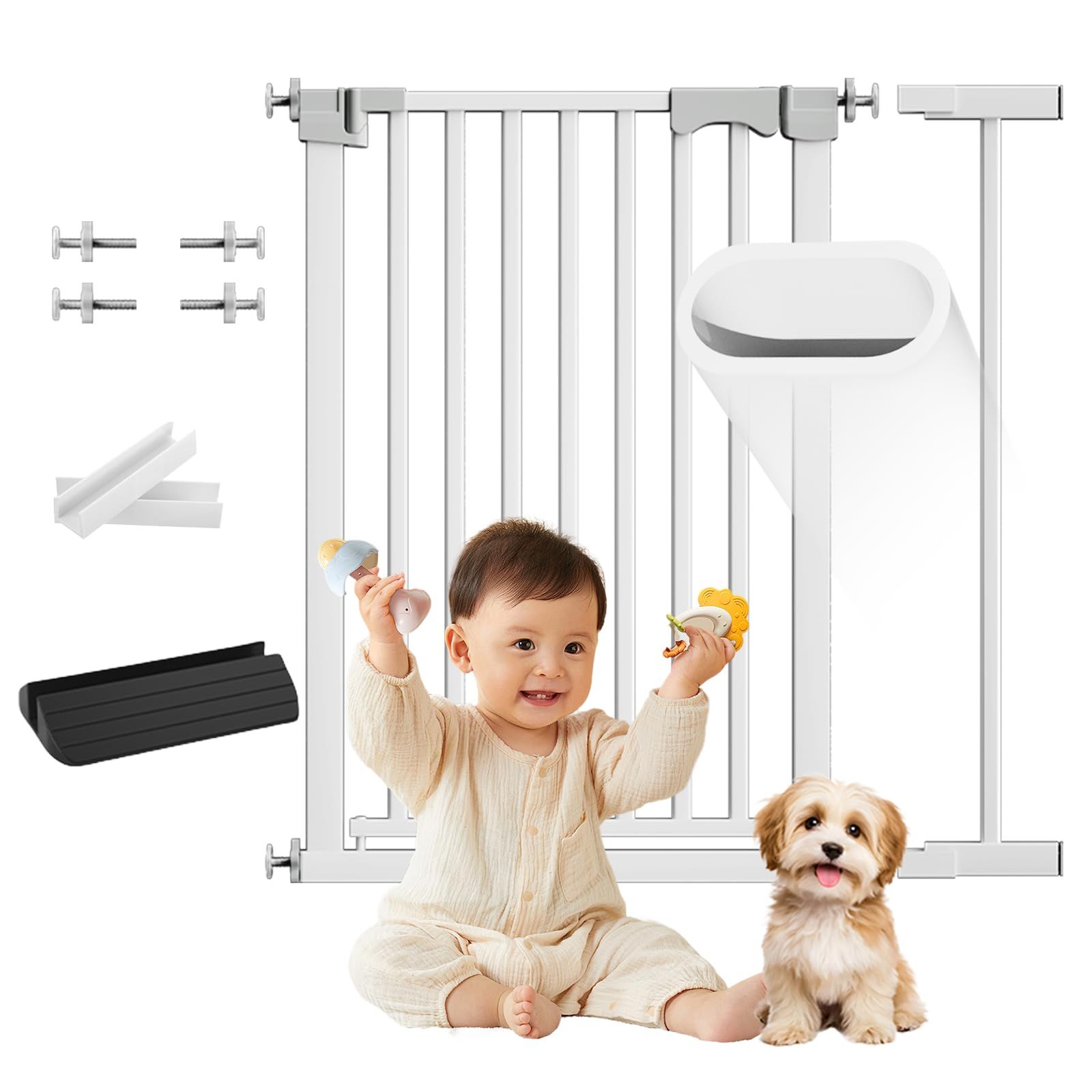【2025新改良】 ベビーゲート ハイタイプ ペットゲート 突っ張り式 高105cm 幅83~90cm 幅広 置くだけ 厚くスチールゲートドア付き 安心安全ダプルロック機能 前後90°自動開閉 階段 玄関 台所 犬猫脱走防止 防蹴パッド&補強溝&固定金具付き 色: 定番の白_サイズ: 幅83~90cm 高さ105cm