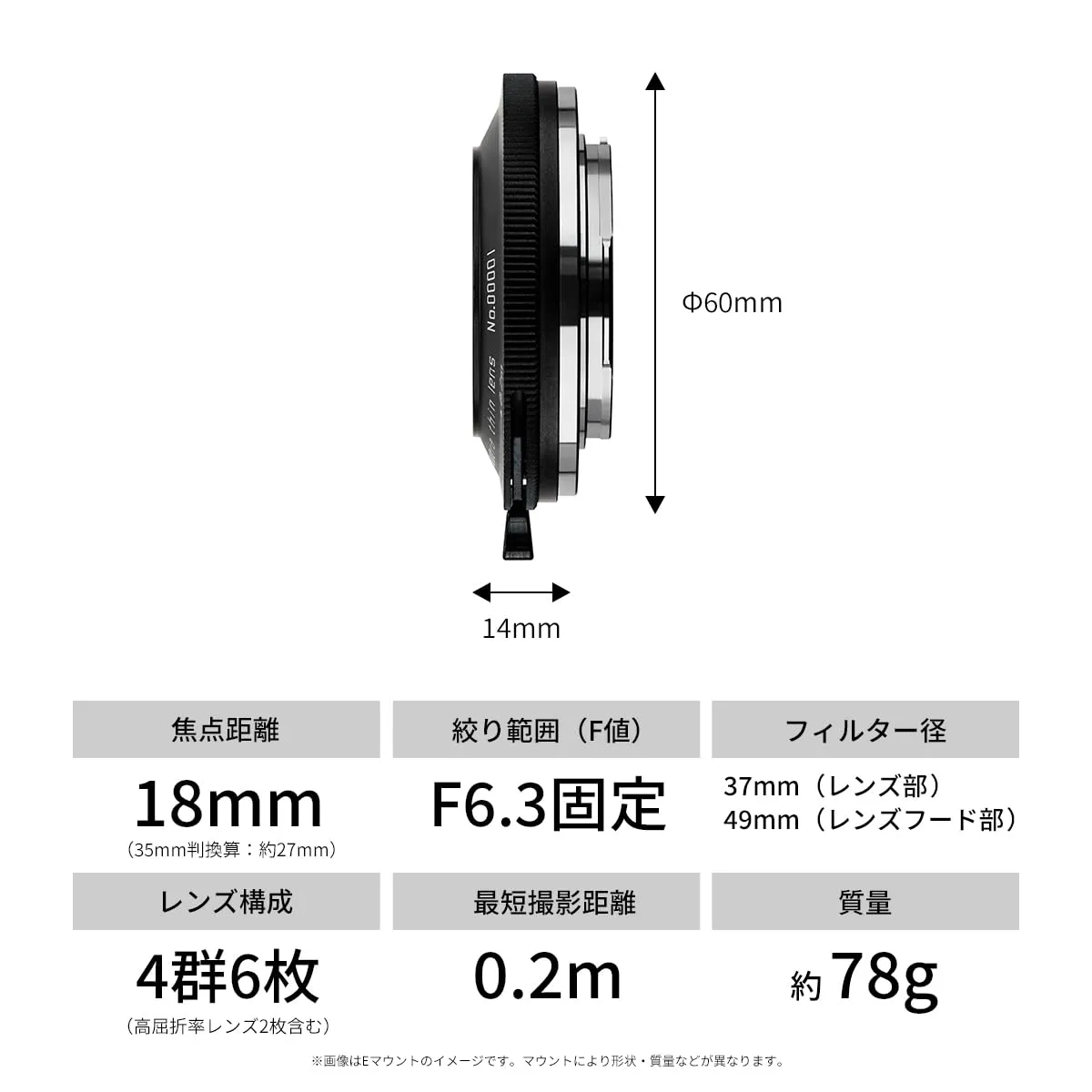 新品 SG-image 18mm F6.3 APS-C対応 Zマウント 単焦点 超薄型 パンケーキレンズ ブラック ウルトラシンレンズ (2年付) (国内正規品)