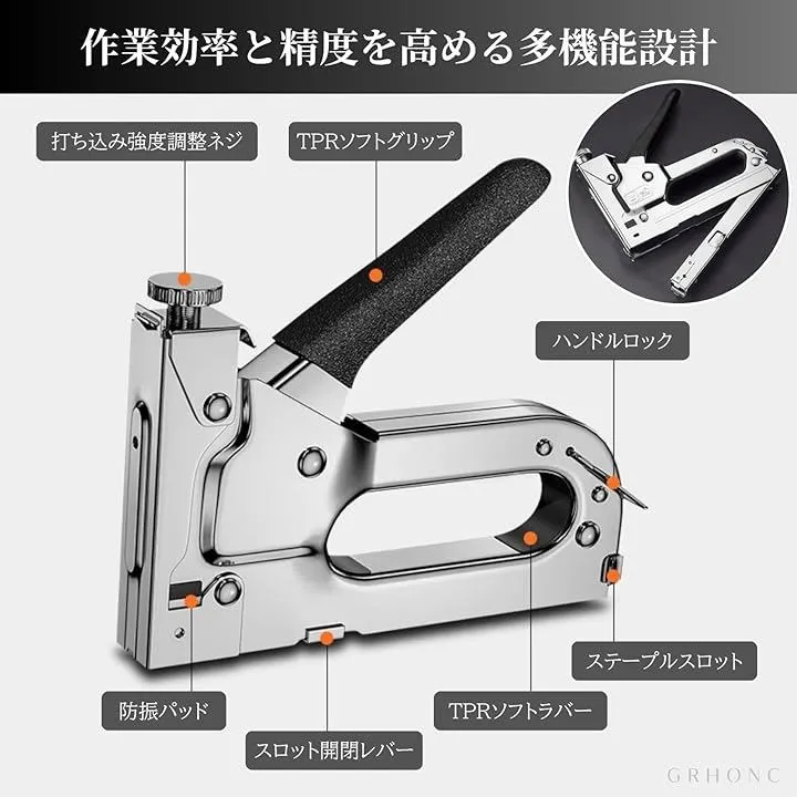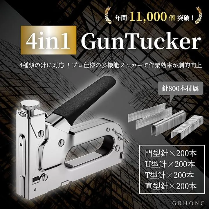 GRHONC タッカー 4in1 針800本付き ガンタッカー タッカーガン ハンドタッカー ステープルガン 多機能 DIY 木工 家具 (タッカー+針800本)