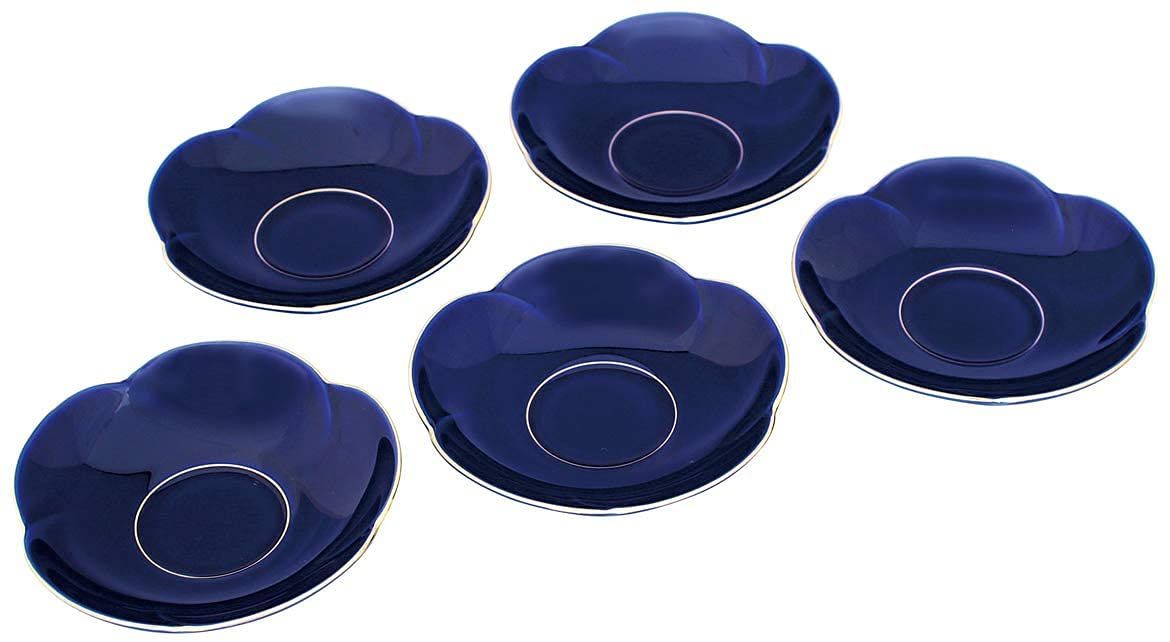 【艶やかで優しい梅の花の形の茶托セット】香蘭社の代表的な色であるルリ色の、茶托5枚セットです。