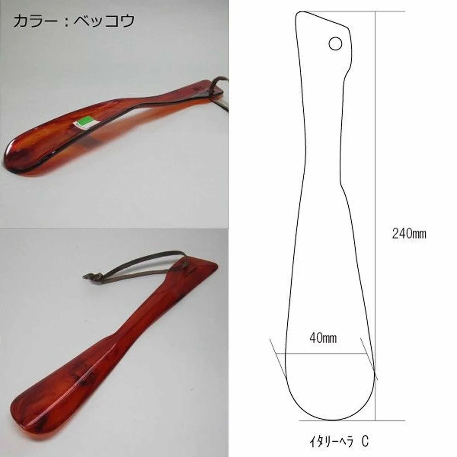近藤 ドアストッパー・くつべら・玄関小物 ベッコウ色 ミディアム ショート 24cm×4cm ハンドシューホーン C type