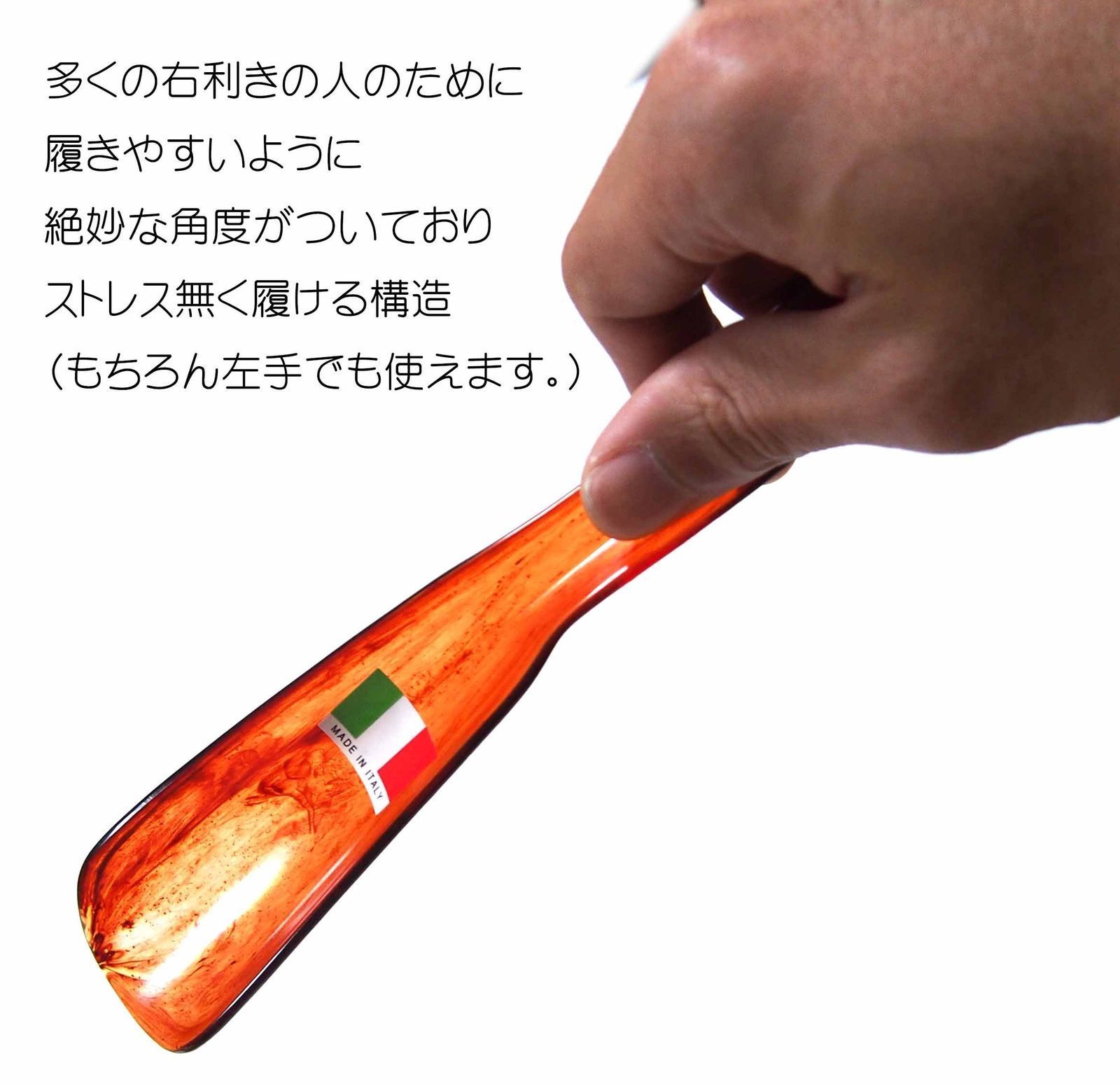 革靴の本場、イタリアからやってきた、軽量で使いやすい形状のおしゃれなハンド靴べら。