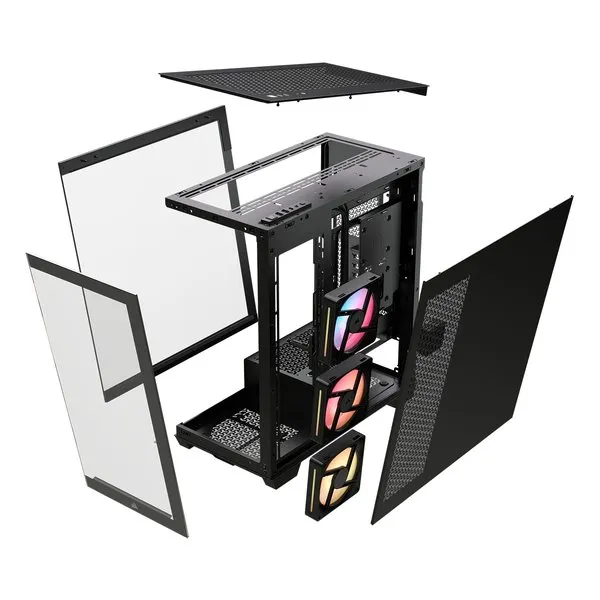 ●パノラマガラスで魅せるデザイン 前面と側面に取り外し可能な強化ガラスパネルを採用し、美しい内部構成を魅力的に演出。 クリーンでモダンな外観と高いメンテナンス性を両立しています。