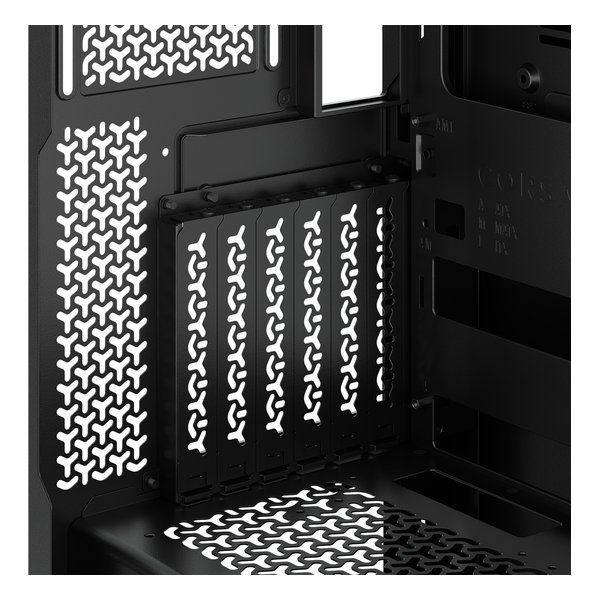 ■対応ケースファン:上面 120mm x3 / 140mm x2、右サイド 120mm x3 / 140mm x2、背面 120mm x1、底面 120mm x3 / 140mm x1