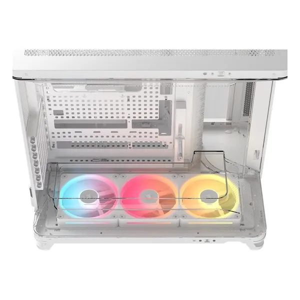 ●トリプルチャンバーデザイン 専用の360mmラジエーターチャンバー、メインチャンバー、PSUチャンバーをそれぞれ独立させたデザイン。 熱源を効率よく分散し、システム全体の冷却効率を最大化します。