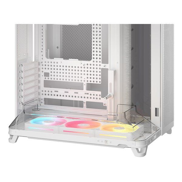 ●iCUE LINKシステムでRGBとファンを一括管理 iCUE LINK対応ハブを標準搭載し、対応機器をケーブル1本で接続。 発光パターンや回転数を自在に制御し、美しい内部と統一感あるライティングを実現します。