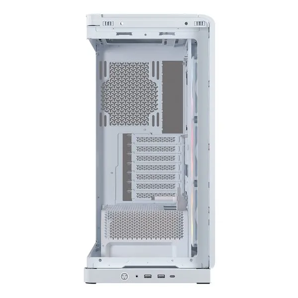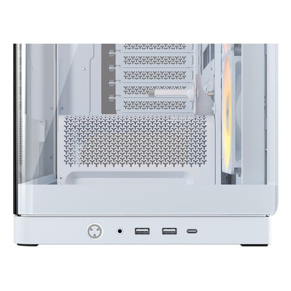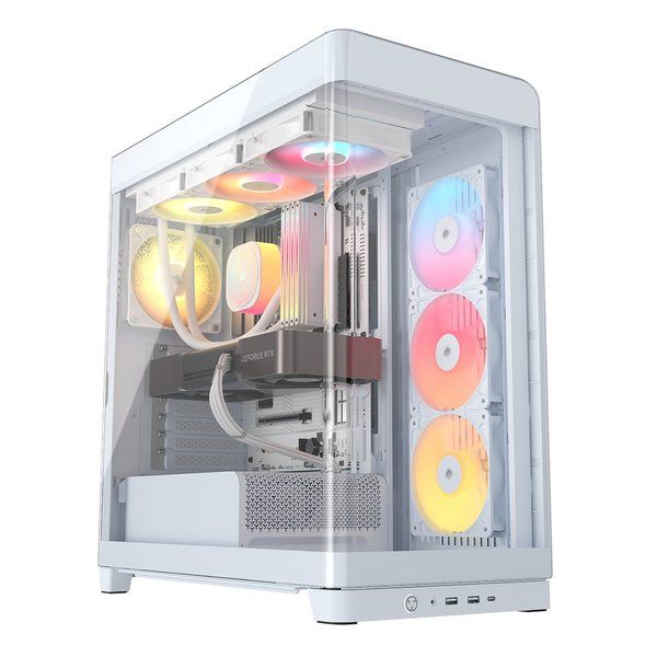 ●パノラマガラスで魅せるデザイン フロントとサイドを一体化したラップアラウンド強化ガラスパネルにより、内部パーツを美しくディスプレイできます。 透明性と強度を兼ね備え、防砕フィルムで安全性も向上しています。