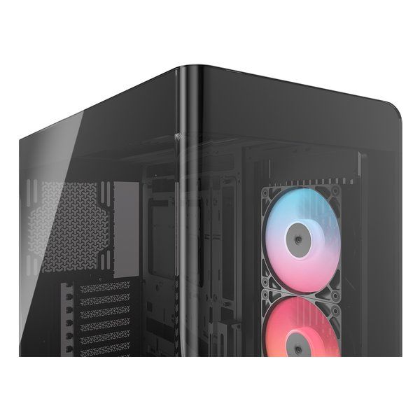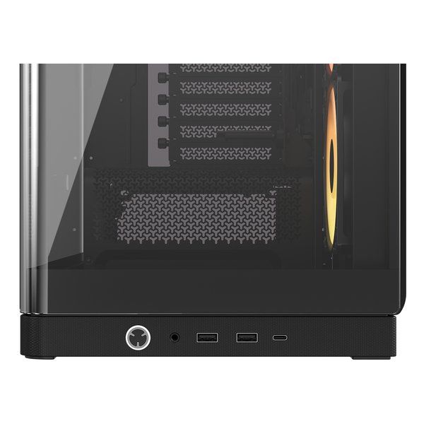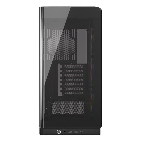 ●パノラマガラスで魅せるデザイン フロントとサイドを一体化したラップアラウンド強化ガラスパネルにより、内部パーツを美しくディスプレイできます。 透明性と強度を兼ね備え、防砕フィルムで安全性も向上しています。