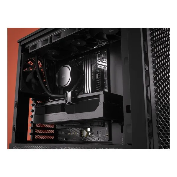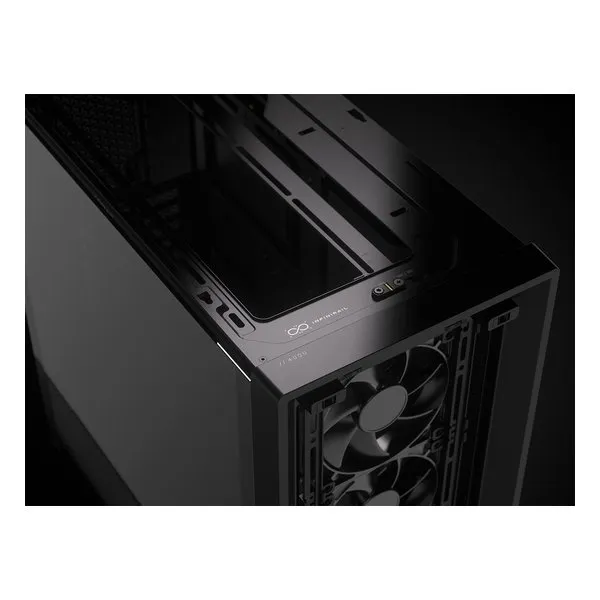 柔軟なファンレイアウトが可能なInfiniRailシステムを搭載。PWMファンを備え、背面コネクタ設計のマザーボードに対応するミドルタワー型PCケース
