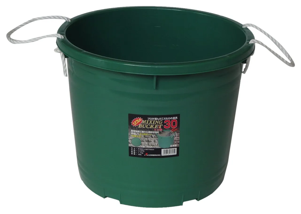 モルタルの混練に最適な耐衝撃性素材を使用 内側には目盛りが付いています 持ち手ロープ付