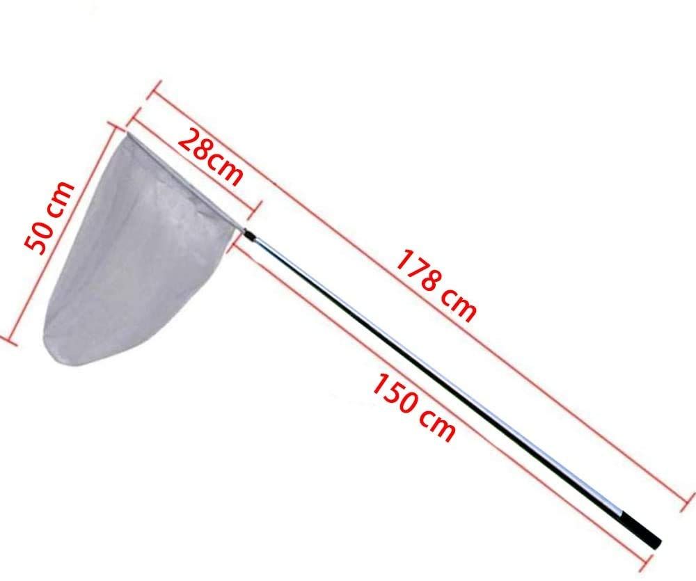 本体サイズ :30(網直径)×170×3(柄の直径)cm 、柄は65~140cmの長さに伸びることできる、2~3cmの差。重量:300g