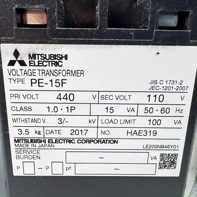 【商品情報】 メーカー:三菱電機 商品名:計器用変圧器 型番:PE-15F 数量:1箱2個入り