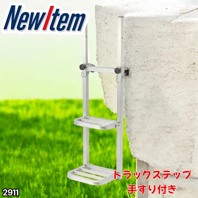 #2911 手すり付き 折りたたみ式 トラックステップ 耐荷重120kg 2段 アルミ製 トラックラダー トラック用荷台はしご 昇降ステップ 荷台ステップ ※一部地域離島別途配送料有