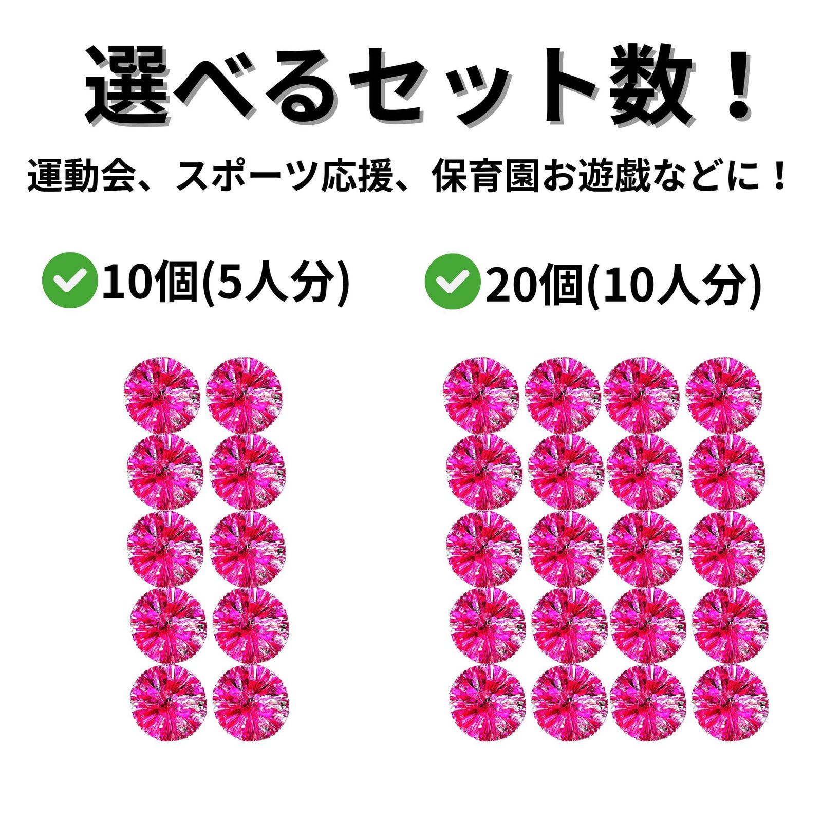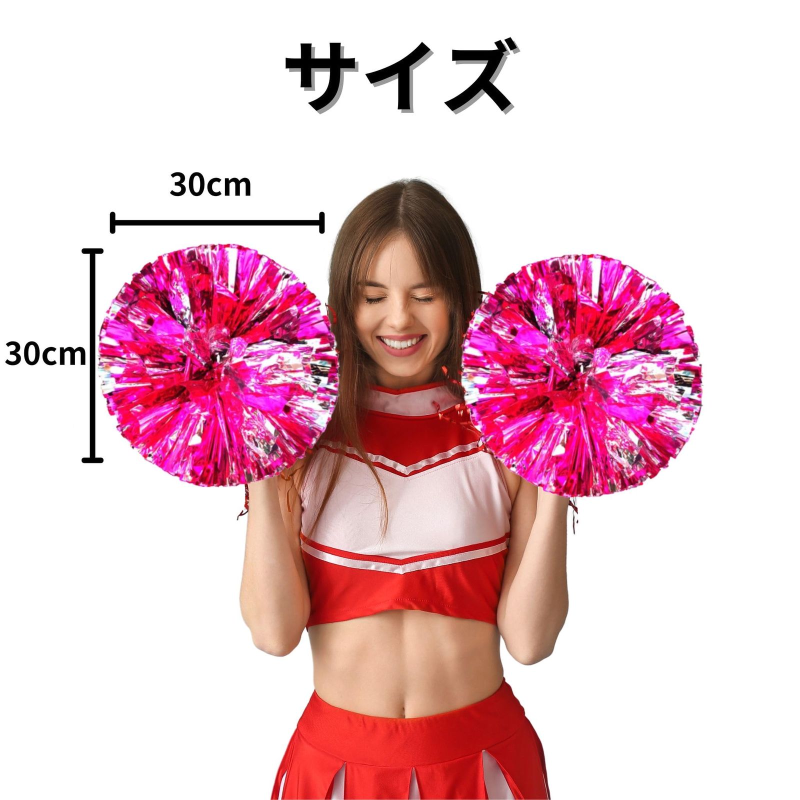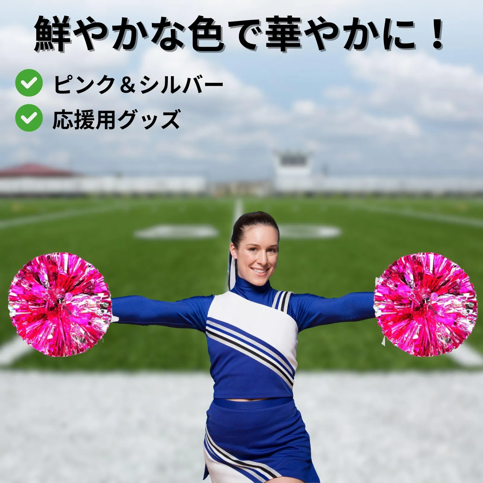 新品 bath&bath ポンポン チア ダンス チアリーダー 20個セット(10人分) 持ち手付き 30cm×30cm (ピンク+シルバー) 応援 学校行事 イベント 学校 コスプレ (20個)