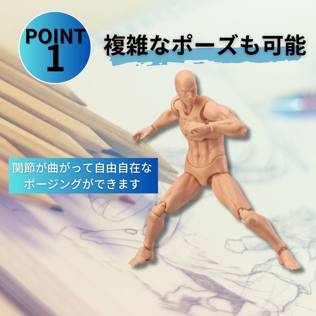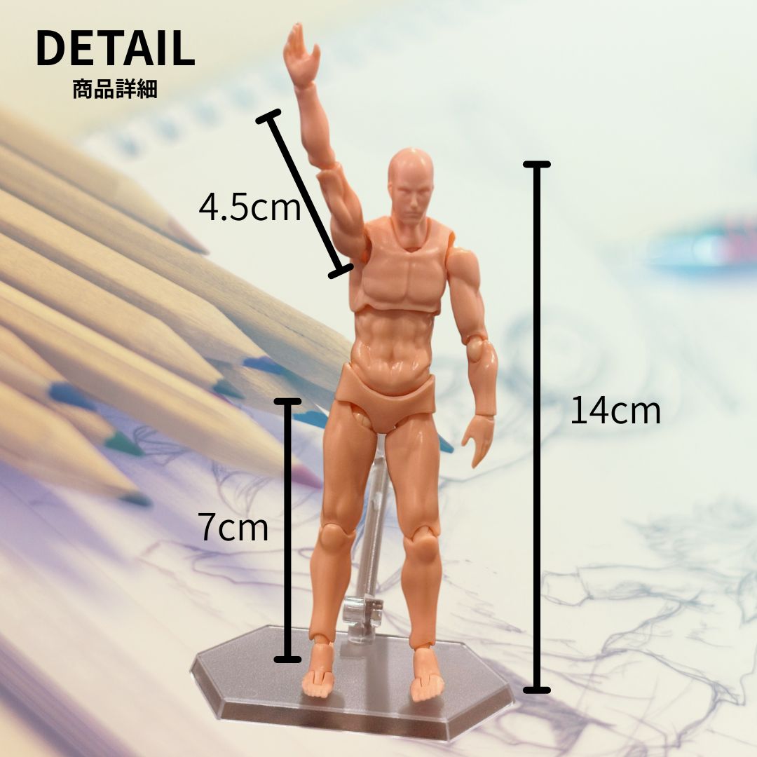 【素材】 ・ABS樹脂、PVC ※送料を抑えるため簡易包装で発送いたします。 ✦ コンパクトで机の上でも使いやすい ✦ 力強い男性ポーズをリアルに再現 ✦ 筋肉・関節の理解が深まり表現力アップ あなたの創作活動を力強くサポートする 男性型デッサンドールです!
