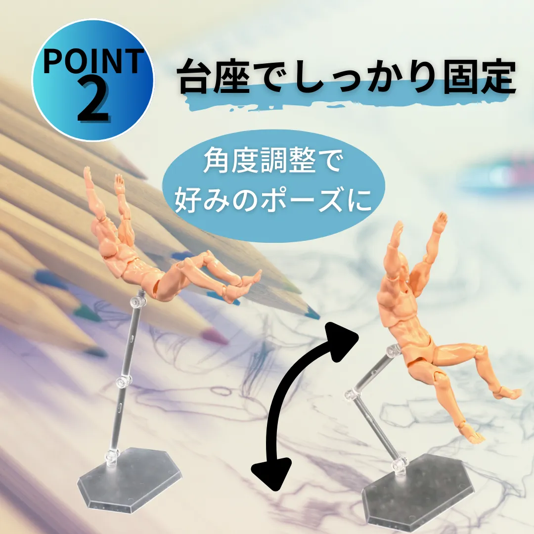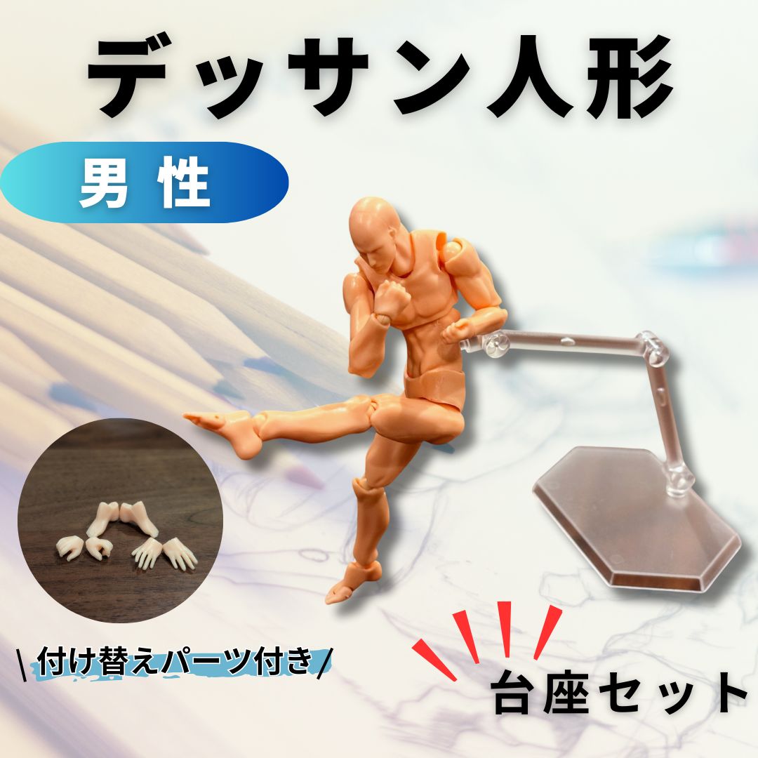デッサンドール 男性型 可動式 モデル人形 台座・交換パーツ付き デッサン人形 ポーズ人形 素体 フィギュア イラスト 漫画 アニメ キャラクターデザイン 資料用