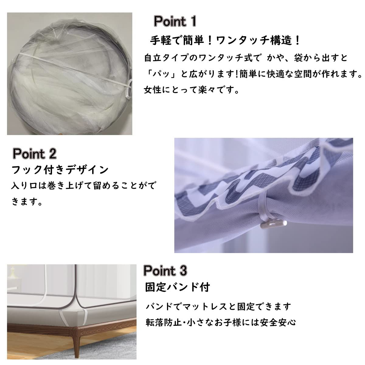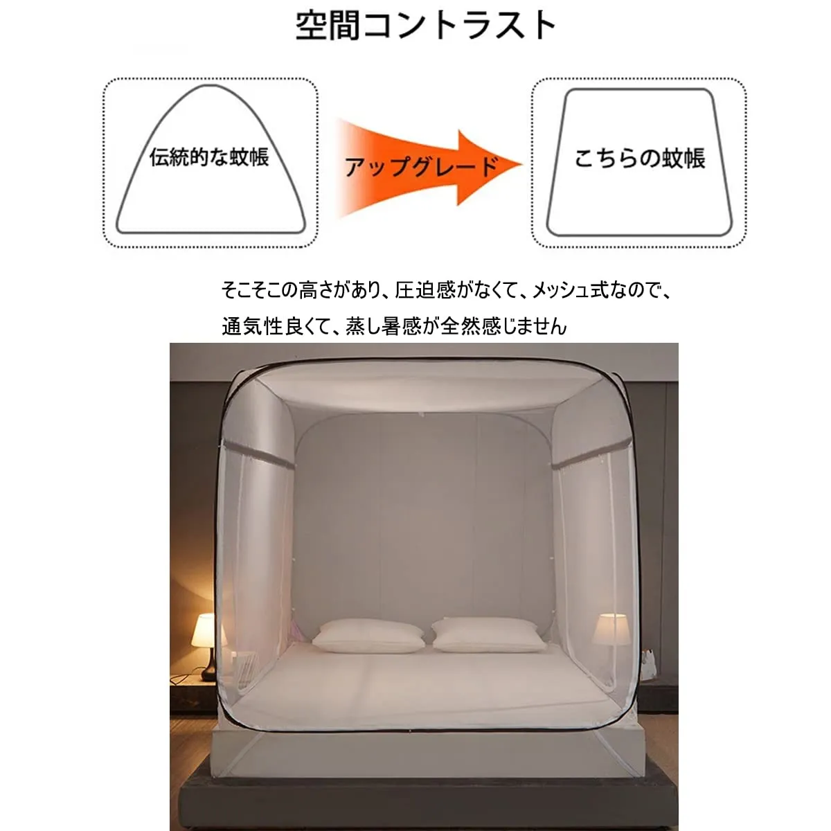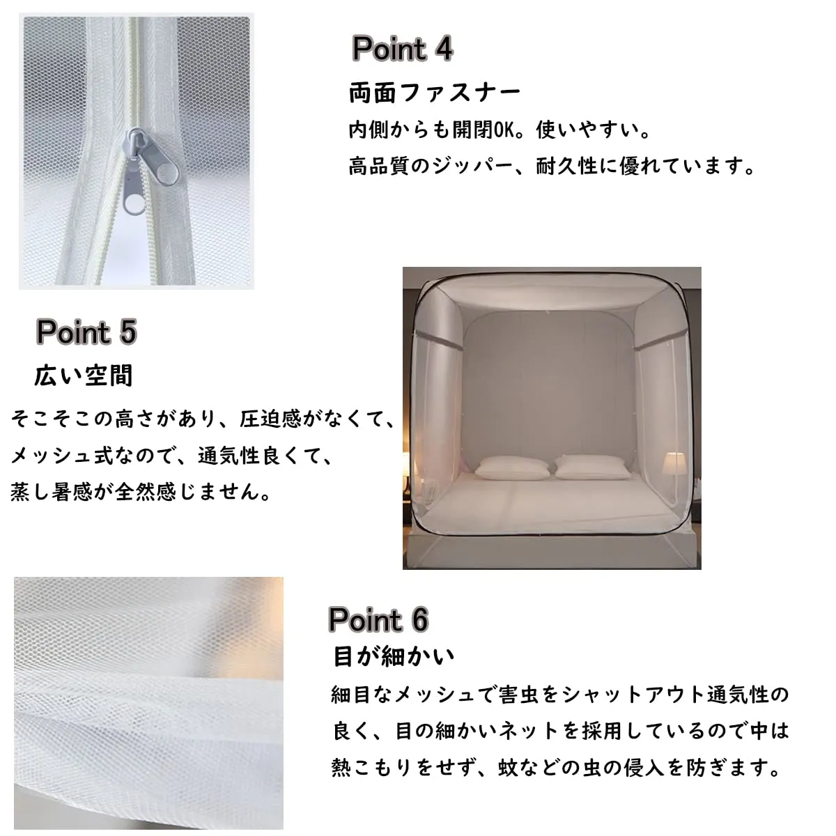 【ワンタッチ式蚊帳】手軽で簡単!ワンタッチ構造!自立タイプのワンタッチ式で かや、袋から出すと「パッ」と広がります!簡単に快適な空間が作れます。女性にとって楽々です。