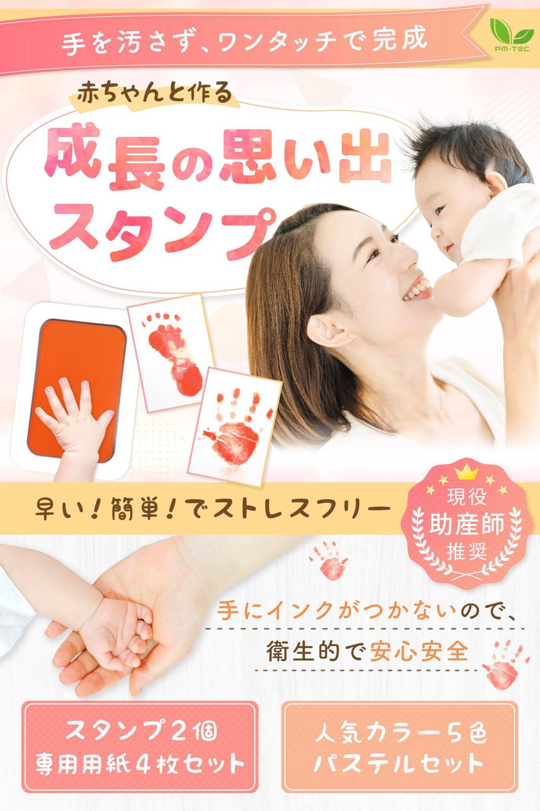 新品 【助産師推奨】手足が汚れない! 手形スタンプ 赤ちゃん 出産祝い 記念 プレゼント ペット PM-TEC (レッド M)