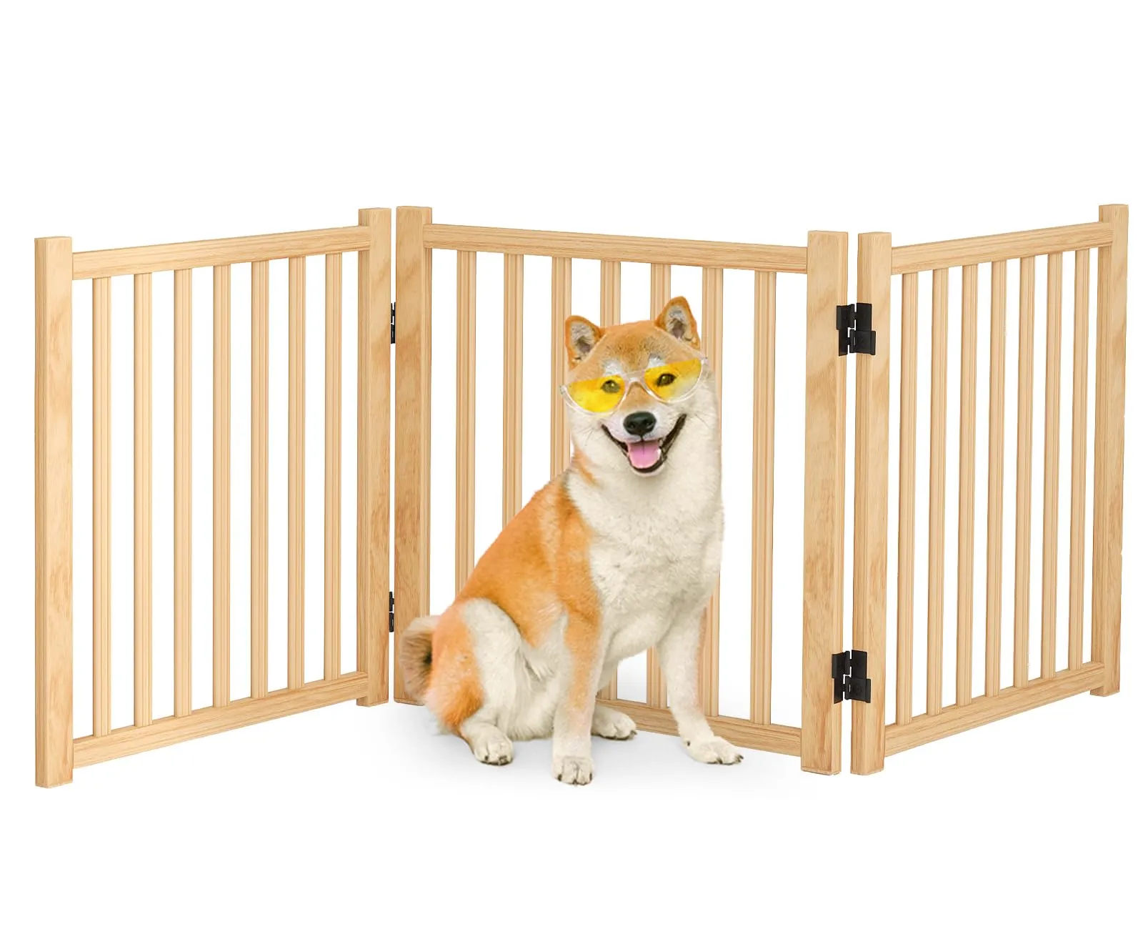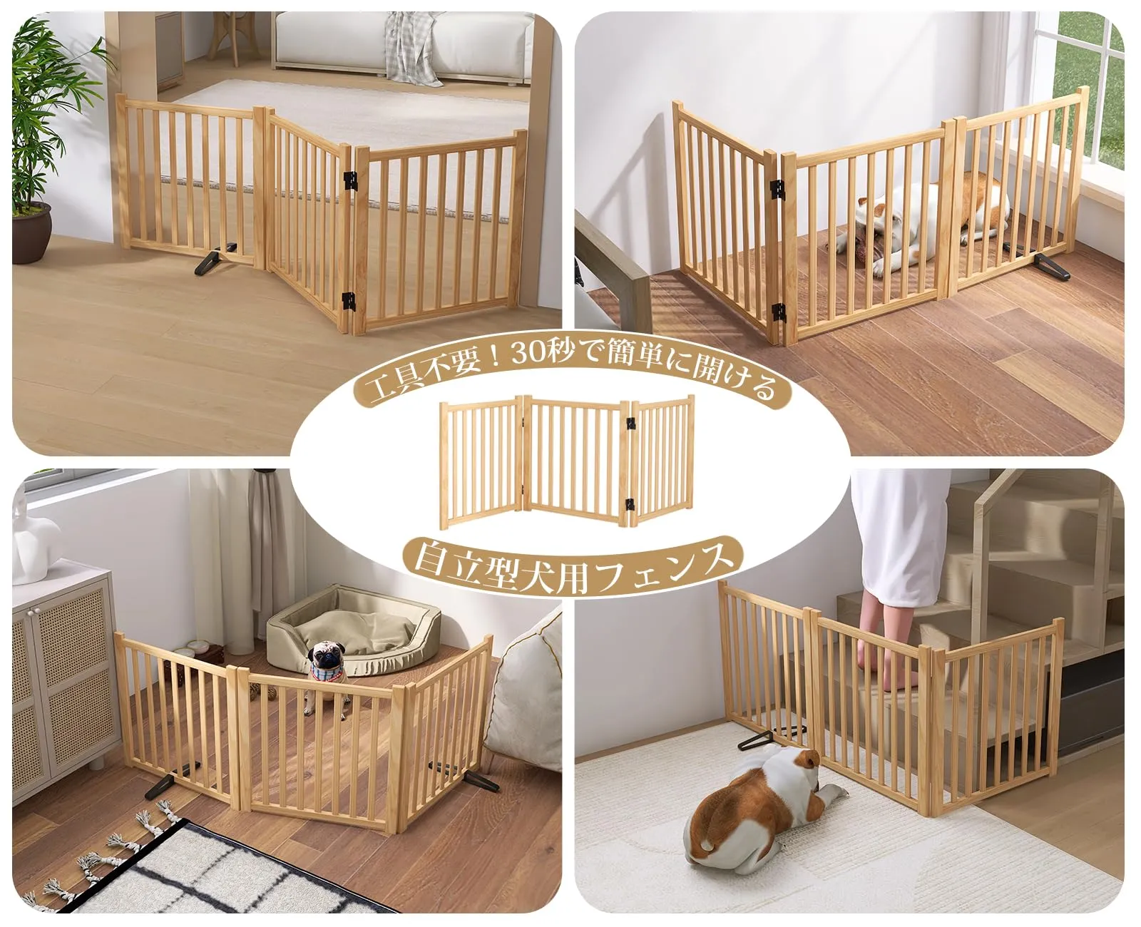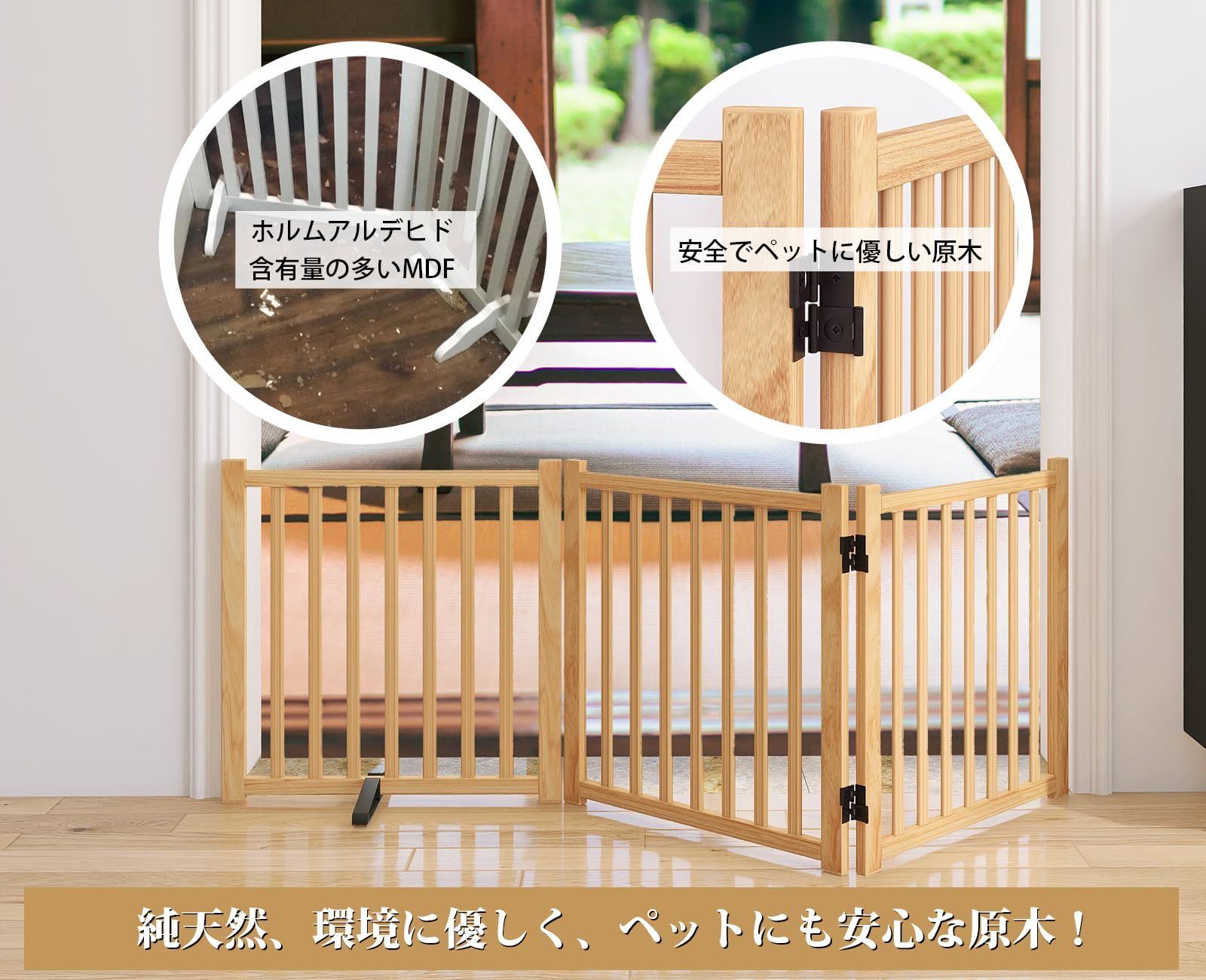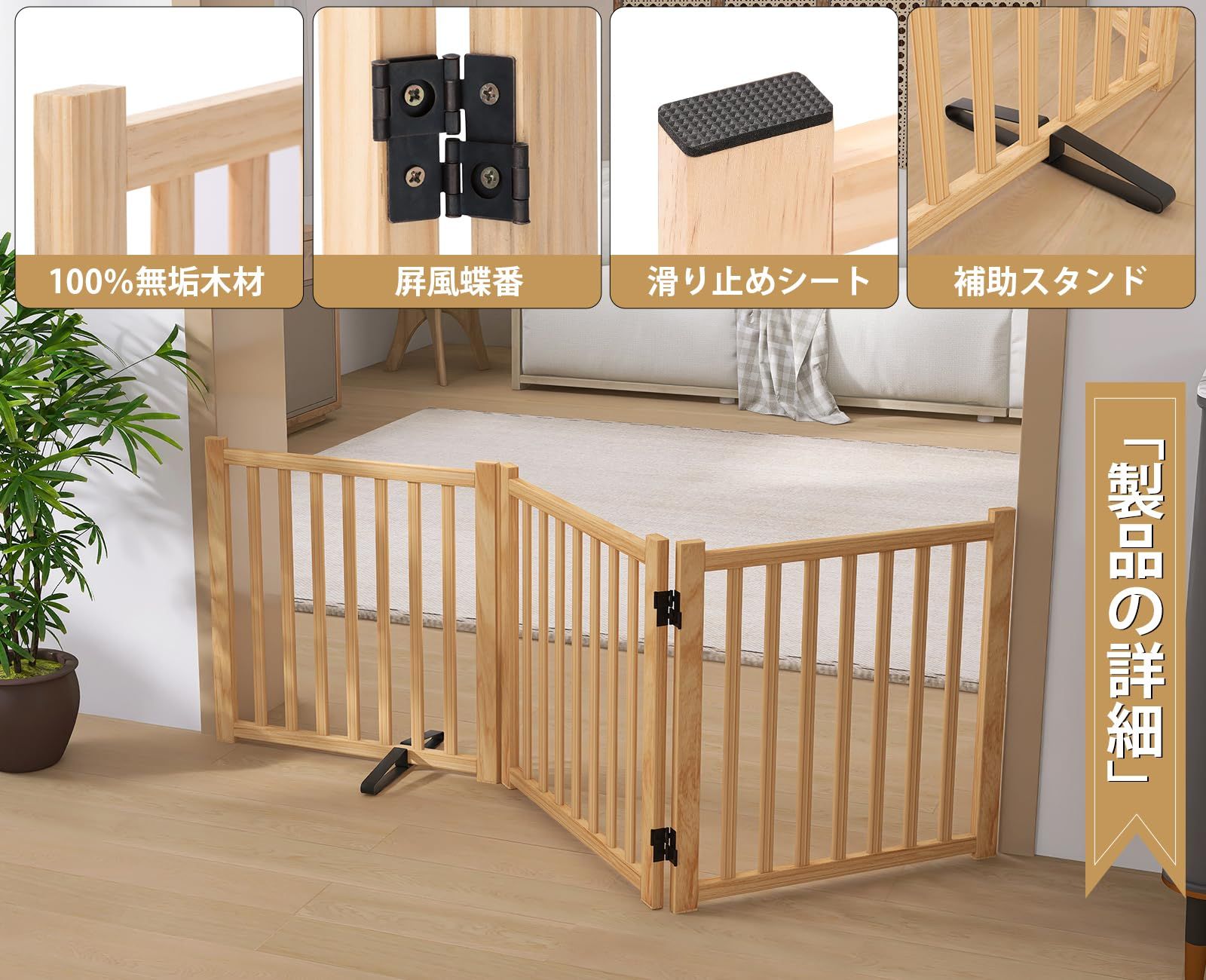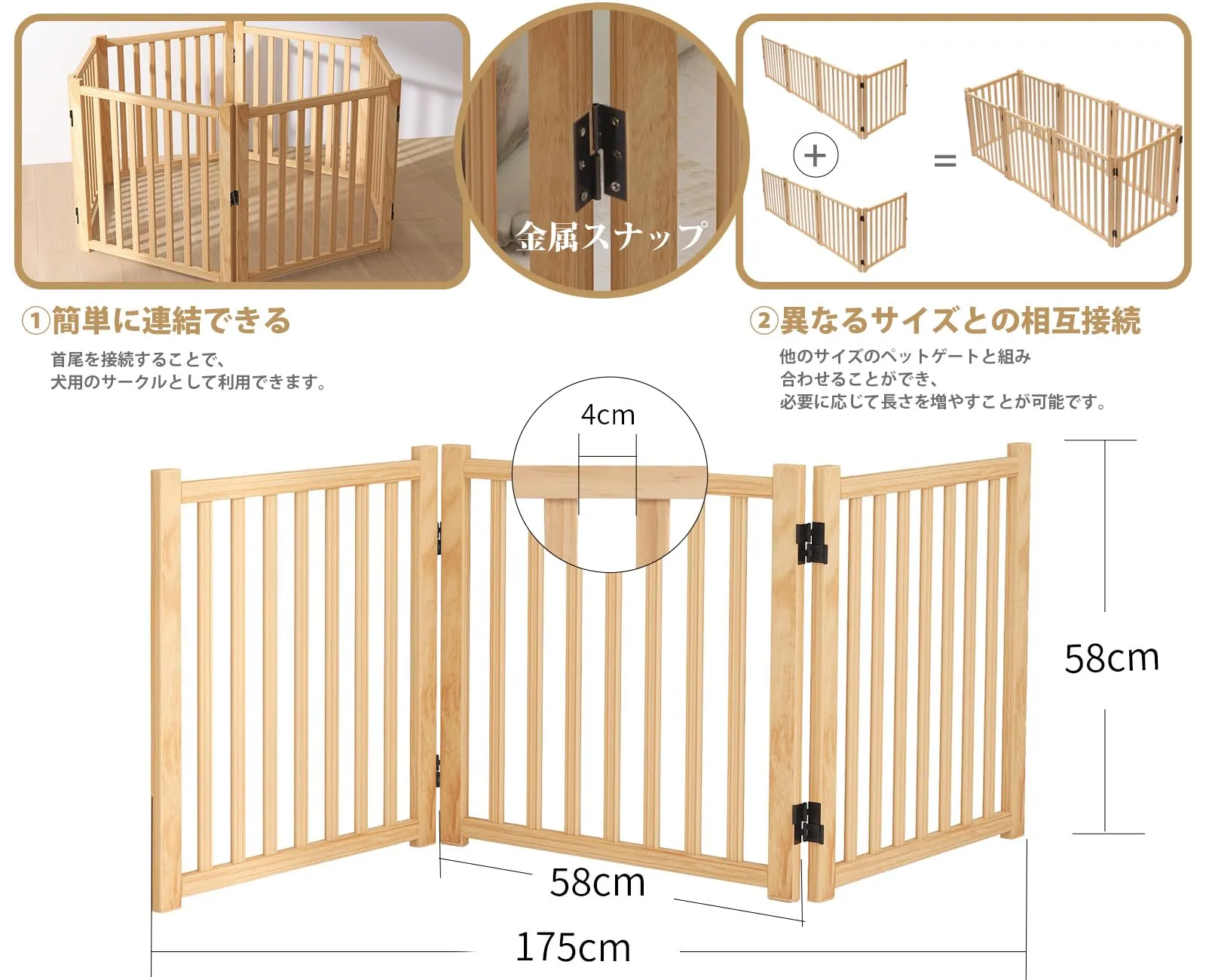 ペットゲート 置くだけ 犬 ゲート ペットフェンス 高さ58cm 幅175cm 自立型ゲート 折りたたみ式 犬フェンス 室内用 ペット飛び出し防止柵 木製 玄関 軽量