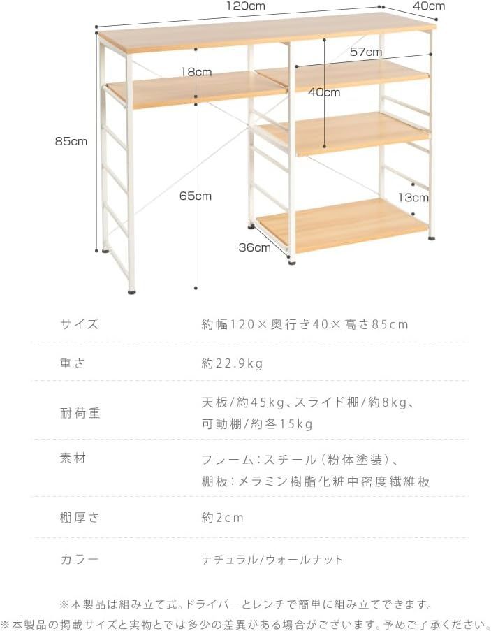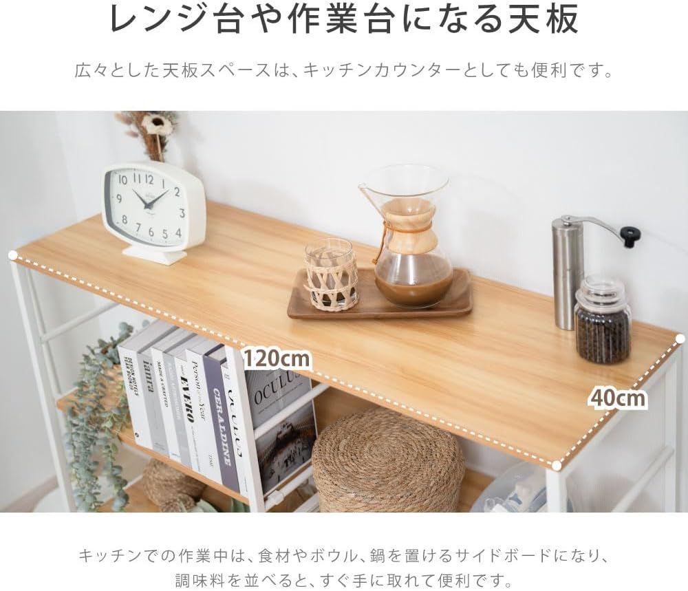 キッチンカウンター ラック スライド棚付き レンジ台 間仕切り 本棚 収納 棚 幅120 可動棚 簡単組立 おしゃれ 収納棚 省スペース キッチンラック tks-kcrk-120-dw