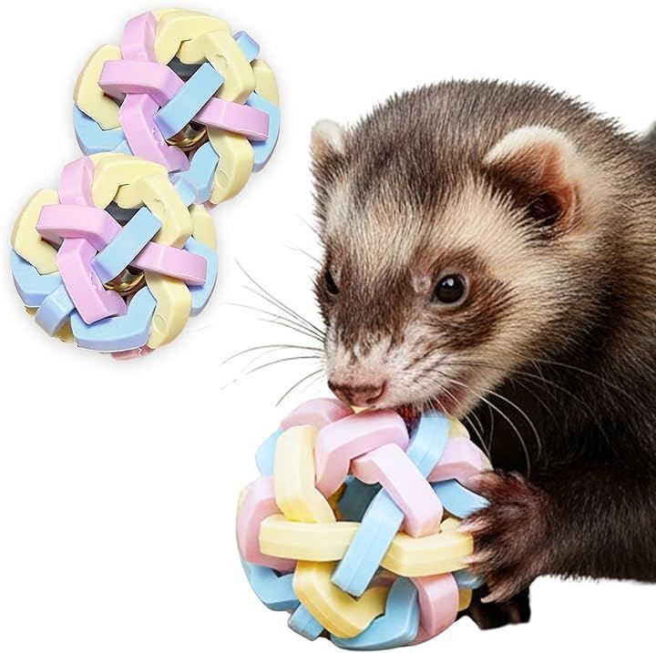 鈴入りで興味を引きつけるカラフルボール_明るい色と内部の鈴がフェレットの狩猟本能を刺激し、転がす・くわえる・追いかけるといった多彩な遊びを引き出します。