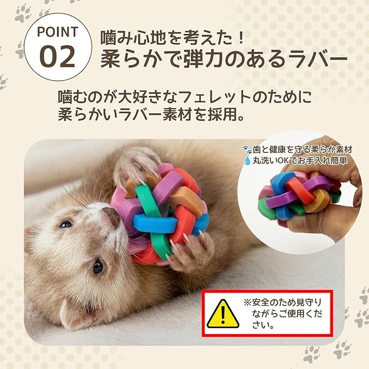 フェレットを中心とした小動物向け設計 フェレット向けに設計されたおもちゃですが、噛む力の弱い小動物にも使用可能です。