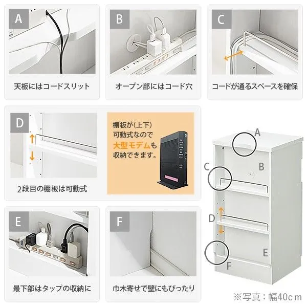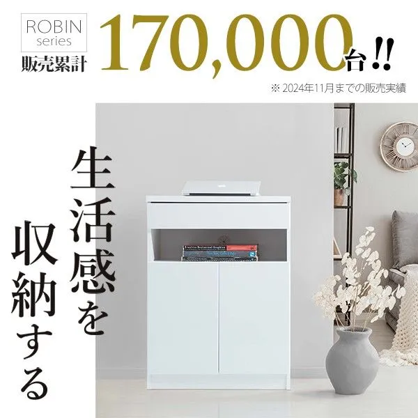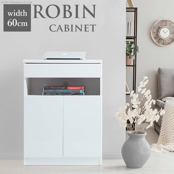 キャビネット 白 配線収納-ロビンキャビネット- 幅60cm チェスト サイドボード モデム収納 ルーター収納 鏡面 白家具 引き出し 北欧 おしゃれ
