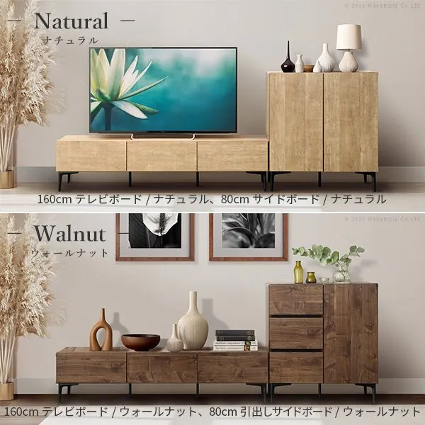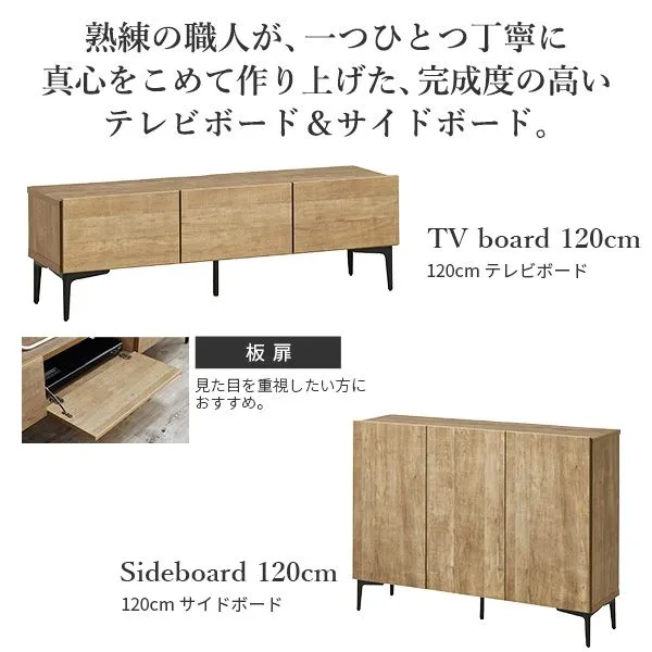 ローボード テレビ台FV 幅120cm 板戸扉+キャビネットFV 幅120cm セット テレビボード サイドボード 国産 完成品 収納 ナチュラル ウォールナット ホワイト 木製
