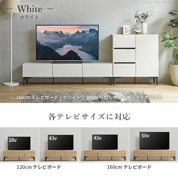 ローボード テレビ台FV 幅120cm ガラス扉+キャビネットFV 幅80cm セット テレビボード サイドボード 国産 完成品 ナチュラル ウォールナット ホワイト 木製