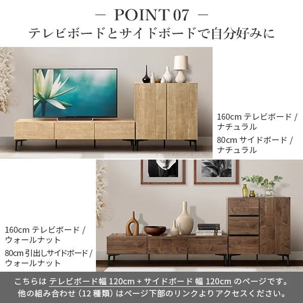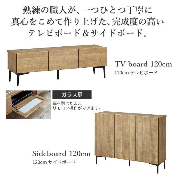 ローボード テレビ台FV 幅120cm ガラス扉+キャビネットFV 幅120cm セット テレビボード サイドボード 国産 完成品 ナチュラル ウォールナット ホワイト 木製