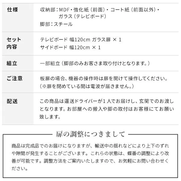【仕様】 収納部:MDF・強化紙(前面)・コート紙(前面以外)・ガラス 脚部:スチール ◎一部組立(脚部のみお客さま取り付けとなります)
