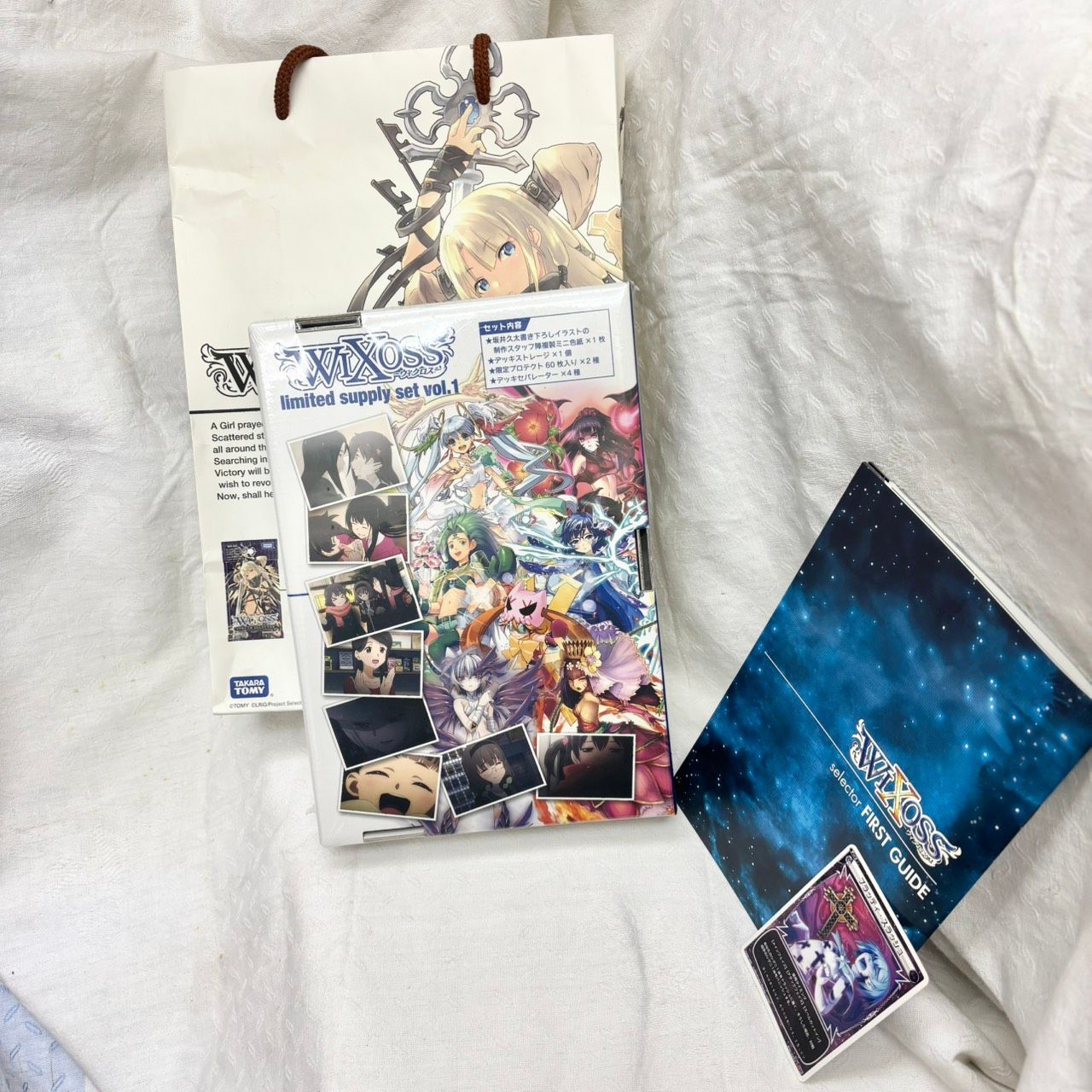 【内容物】 ・WIXOSS limited supply set vol.1(外箱付き) ・selector FIRST GUIDE ・プロモーションカード 1枚 ・紙袋(WIXOSS公式ショッパー) ・関連冊子/フライヤー類 ※画像に写っているものが全てになります。