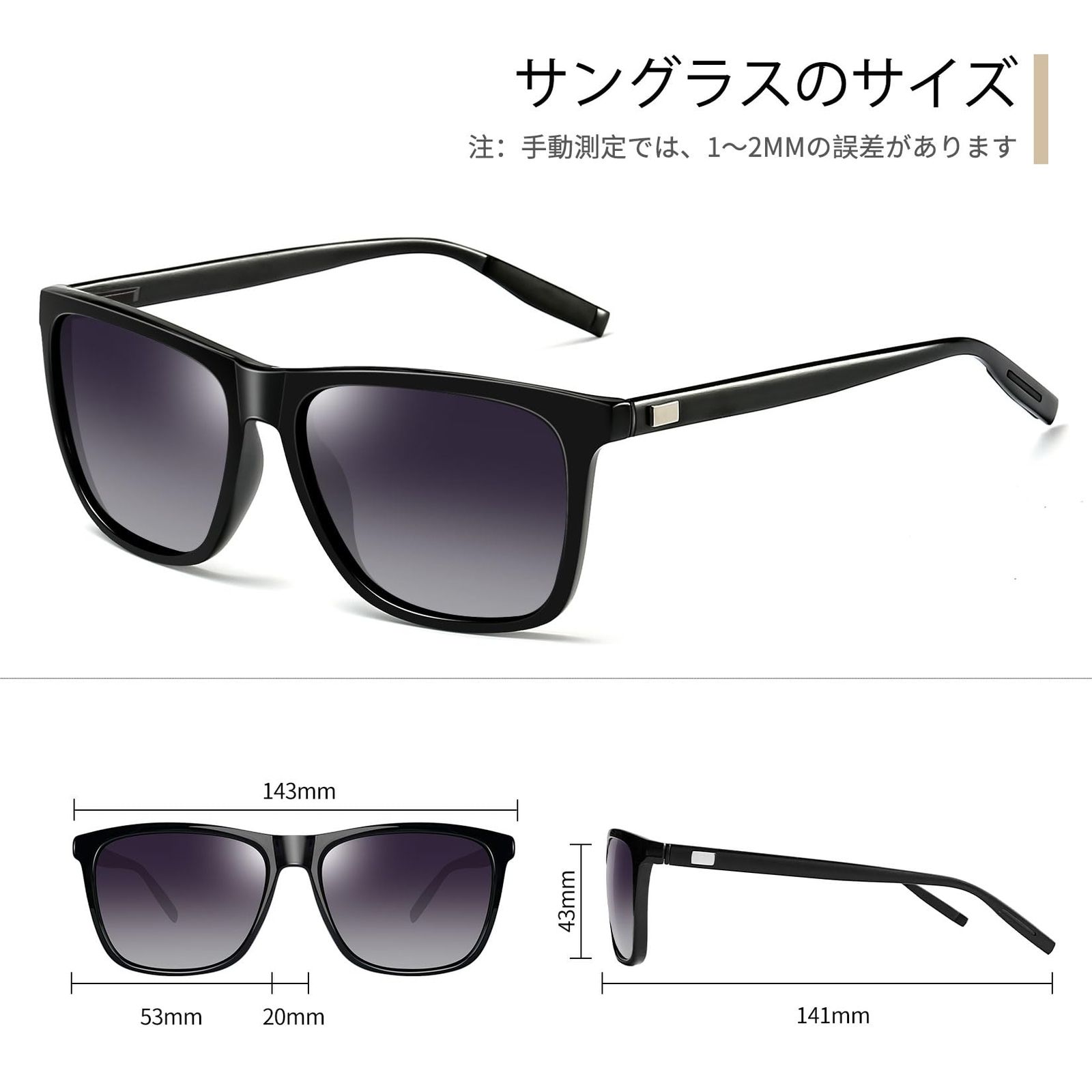 【商品仕様】フレーム幅:143㎜;レンズ幅:53㎜;レンズの高さ:43㎜;ブリッジ:20㎜;アームの長さ:141㎜;重量:22g;レンズの測定サイズにはメガネフレームは含まれません。メンズ 偏光サングラスは、登山、スポーツ、ランニング、自転車、ドライブ、釣りなどのシチュエンにも非常に適しています