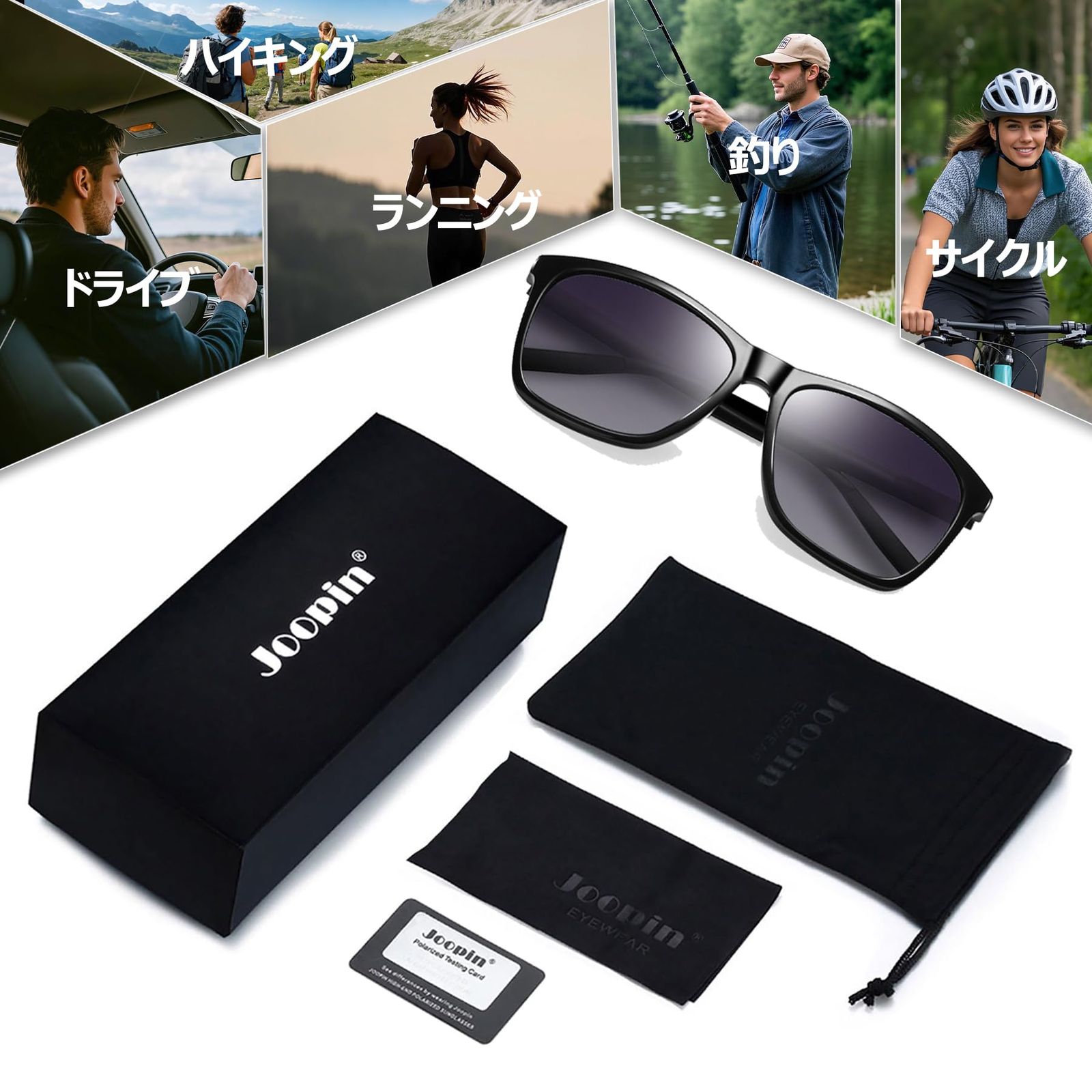 【パッケージ内容】セット内容:JOOPINサングラス本体 × 1、布製バッグ × 1、メガネ拭き × 1、偏光テストカード × 1が付属されています。メンズ 運転用サングラスは、ファッションな外出をサポートし、強い太陽光を恐れません 最後までご確認頂き誠にありがとうございました。 ご確認頂き、ご購入いただけましたら幸いです。 何かご不明点などがございましたらお気軽にメッセージからお問い合わせ下さい。