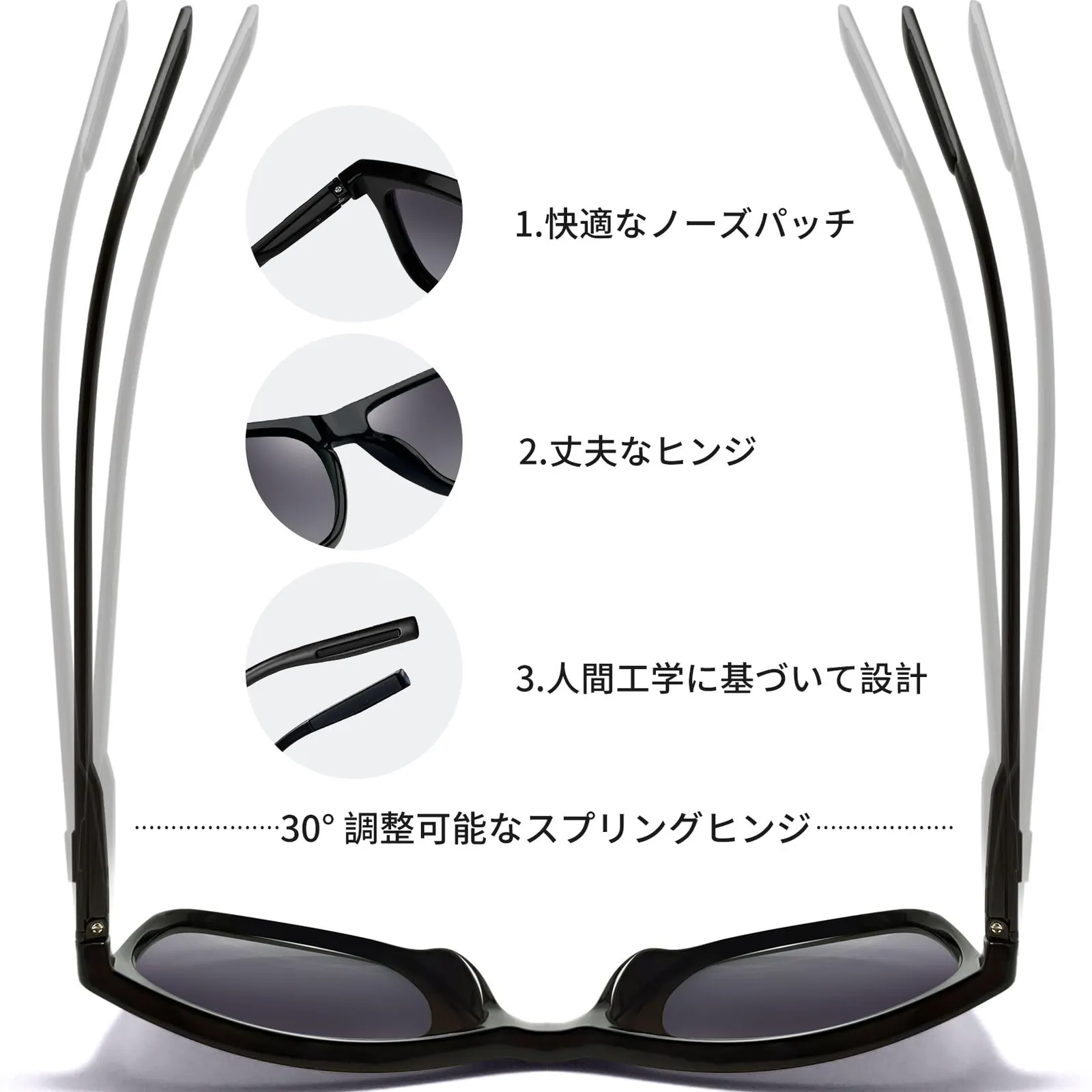 【快適な着用感】スポーツ用サングラスはスプリングヒンジ設計と一体型ノーズパッドの滑り止め設計を組み合わせ、長時間の着用でも圧迫感なく、通勤時も快適で負担がありません