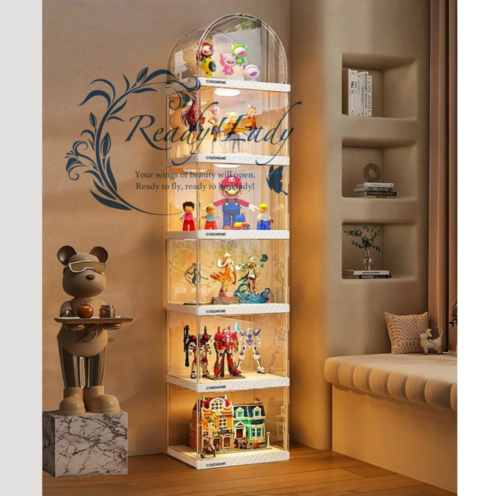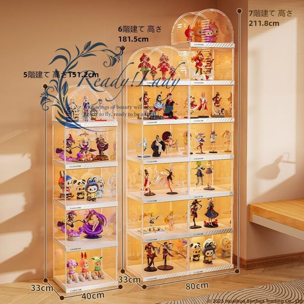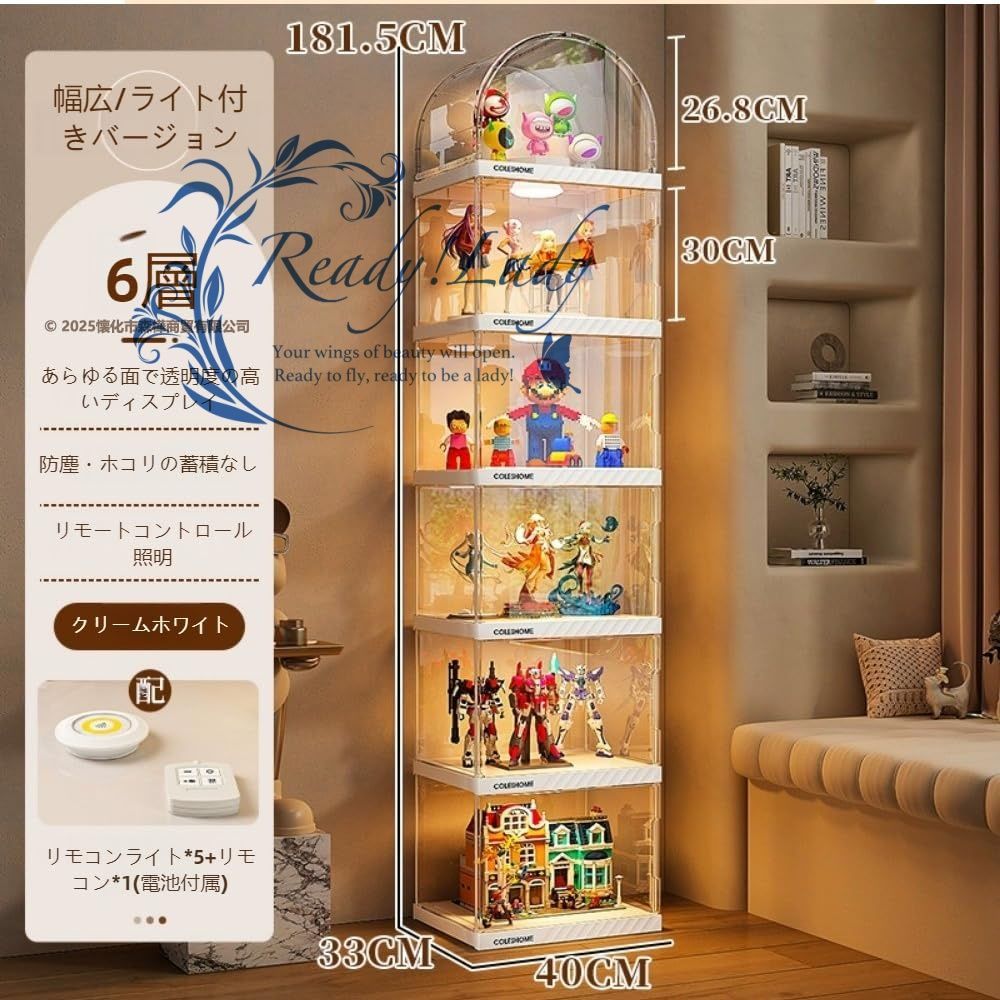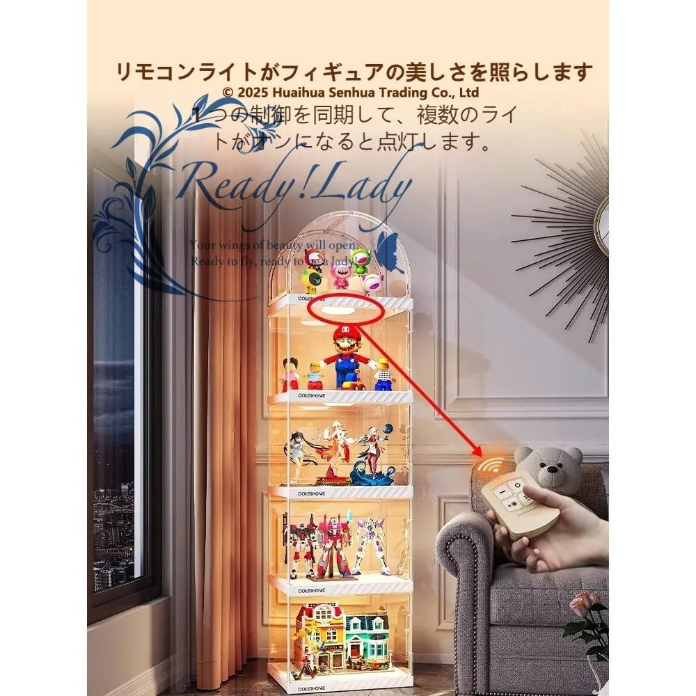 【商品詳細】 ★状態:新品未使用 アーチ型デザインで高級感UP 他社にはない美しいアーチ型天板を採用。フィギュアやコレクションをよりドラマチックに演出し、インテリアとしても映えるデザインです リモコン式LEDライト内蔵 ワンタッチで明るさ調整可能なLEDライト付き。暗所でもコレクションの細部までクリアに照らし、展示効果を最大化します(※安全基準適合品のため審査リスク回避済み) ?紫外線99%カット & 防塵構造 高透明度アクリルパネル(透過率95%以上)にUVカット加工を施し、色褪せ防止。密閉式ドアでホコリ・湿気から大切な収納品を守ります 磁気ドア&強化耐荷重 90度開閉可能な磁吸ドアで取り出しやすく、最大5kgの耐荷重設計。段重ね可能で省スペース収納を実現します 多用途&組立簡単 フィギュア・楽高・ミニカーはもちろん、小物や書籍の整理にも対応。工具不要の5分組立設計で女性でもラクラク設置可能です