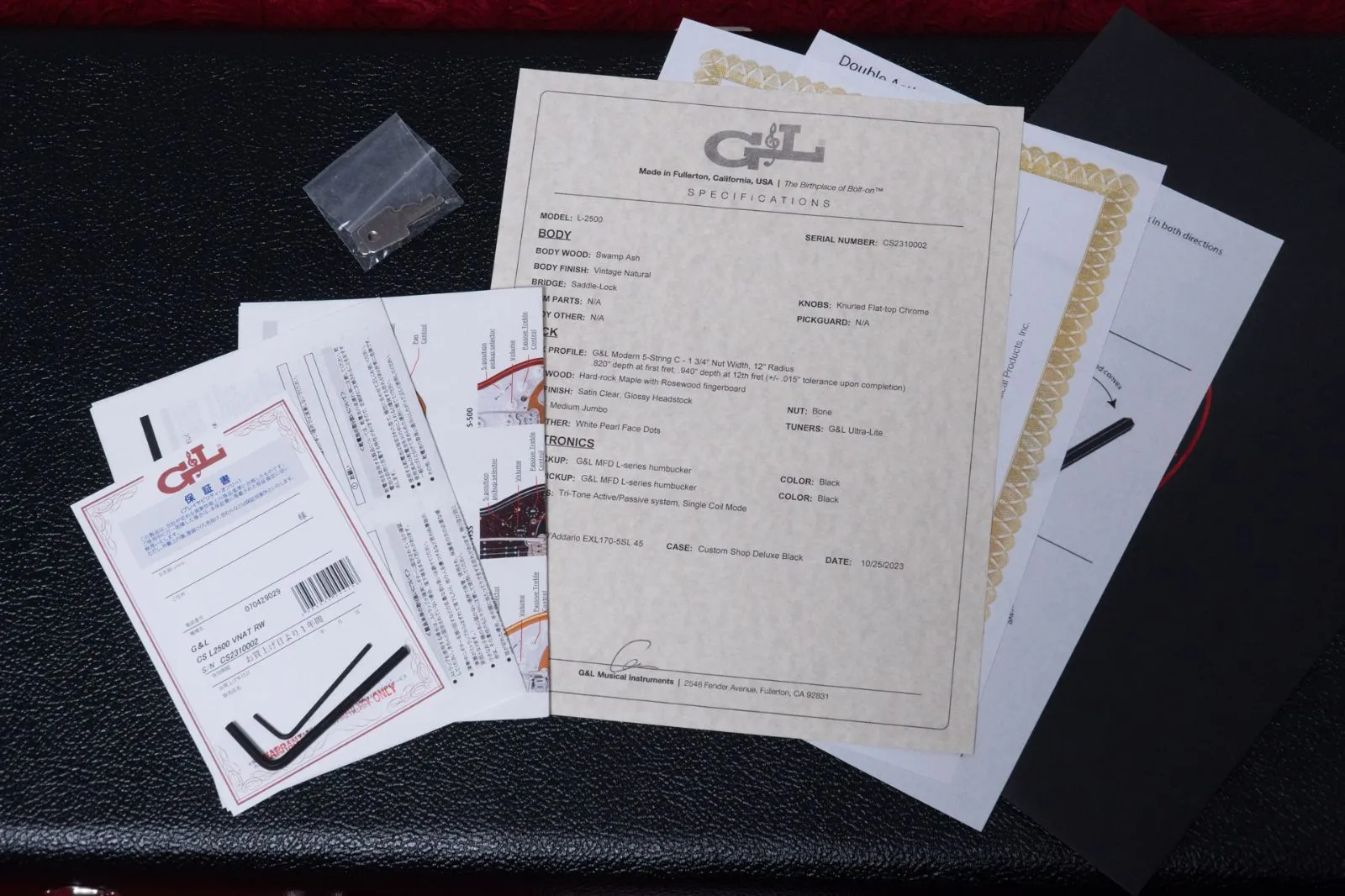 【outlet】G&L / Custom Shop L-2500 Vintage Natural RW 4.375kg #CS2310002【GIB横浜】