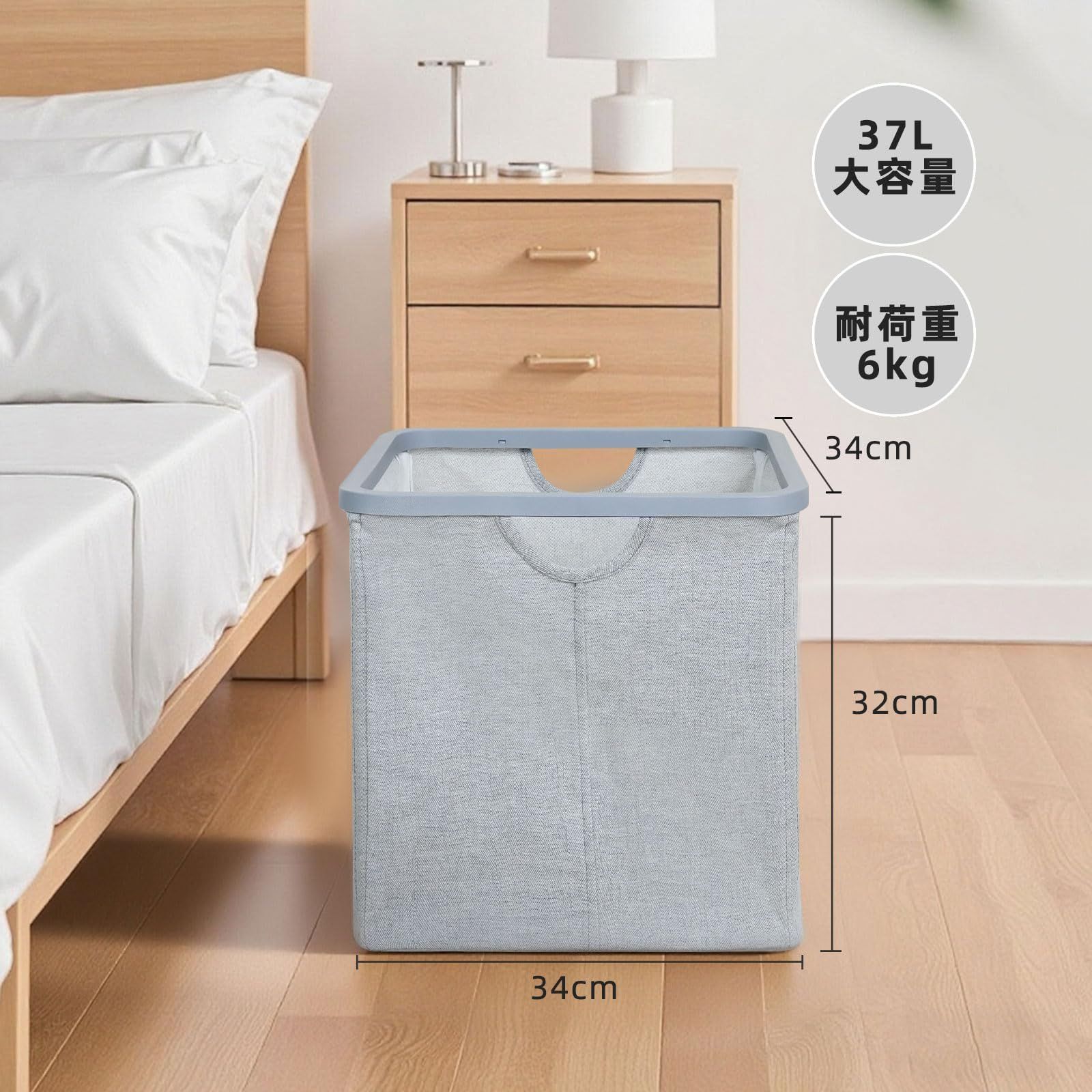 【大容量42Lでたっぷり収納】このランドリーは、37Lの容量で、約12枚の短袖シャツを収納できます。洗濯物だけでなく、おもちゃやぬいぐるみ、日常的な雑貨も収納可能。多目的に使えるので、リビングや子ども部屋、寝室など、さまざまなシーンで活躍します。整理整頓が簡単になり、毎日の生活がより快適に。