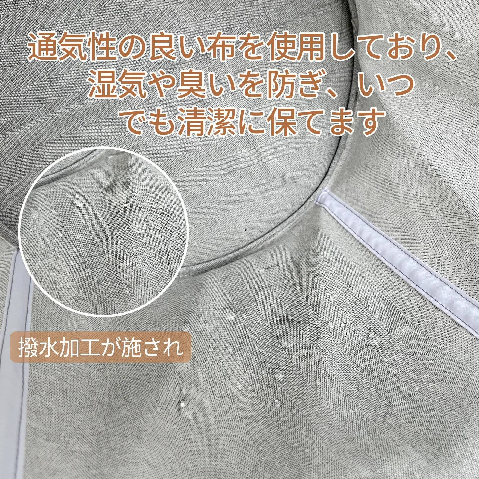 【耐久性と快適さを両立】通気性の良い布を使用しており、湿気や臭いを防ぎ、いつでも清潔に保てます。さらに、布は破れにくい耐久性を持ち、長期間使用しても安心。表面には撥水加工が施されており、小さな水滴や汚れがついても、サッと拭き取ることがで、いつでも清潔を保てます。
