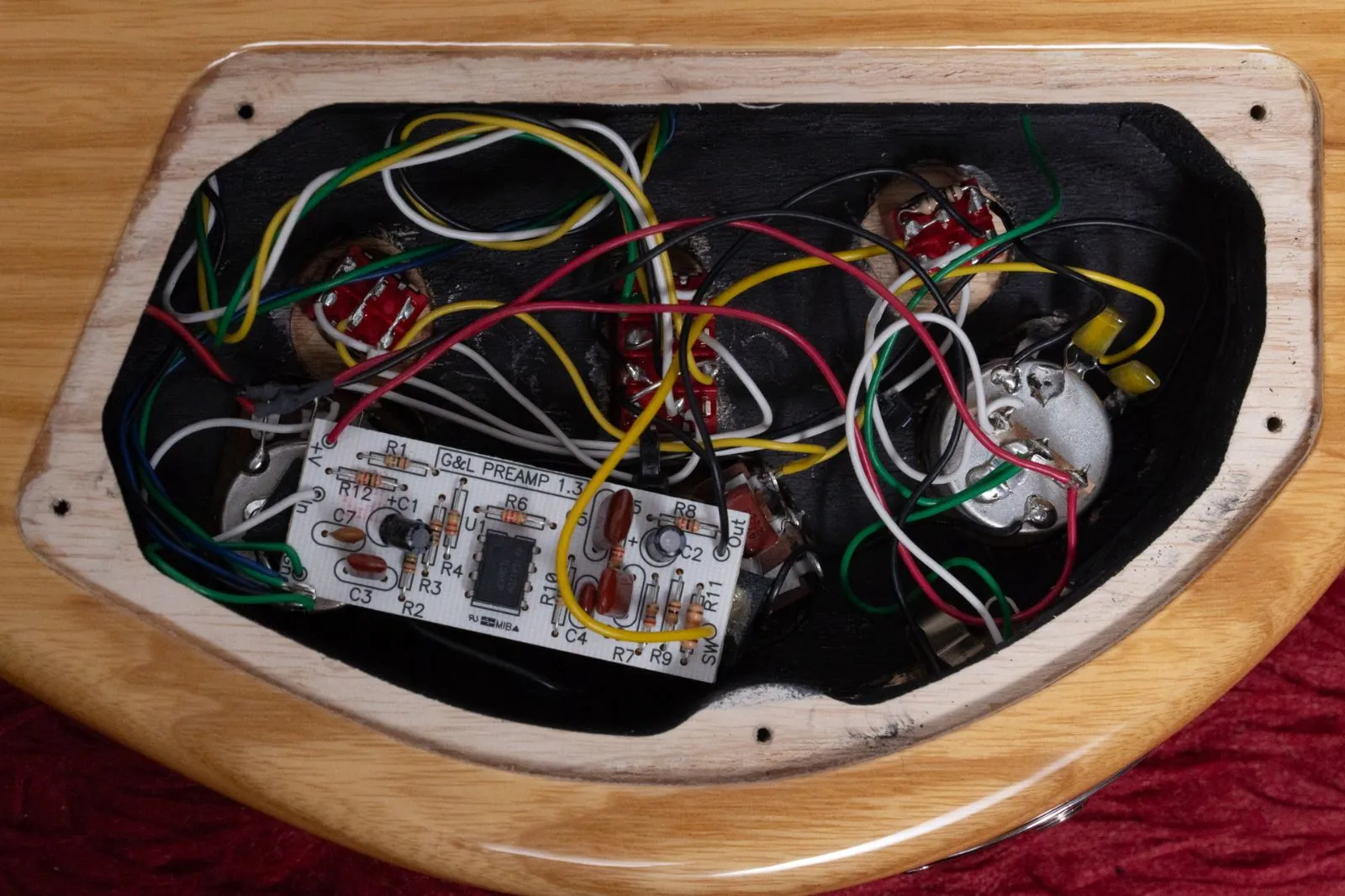 PUの切り替えはもちろん、配線やプリアンプのバイパスなど、ミニスイッチによってあらゆる調整が可能な点はG&Lだからこそ。