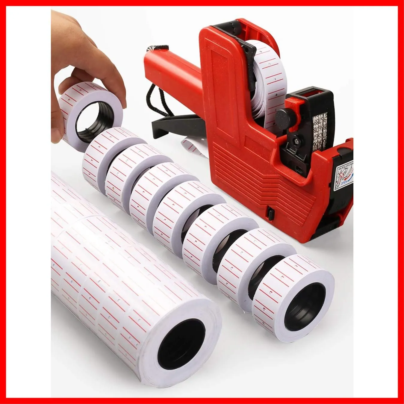 【 注 意 点 】 ・ フ ォ ロ ー頂 かないと確認が取れませんのでお手数お掛けしますが、ボ タ ン一つだけ ポ チ ッ とお願いいたします( * ?? ?*) ━━━━━━━━━━━ Olive-G ラベラー 値札 シール 価格表示 小槌 こずち 赤 ライン 値引き 共用 互換 30個 ハンドラベラー 1巻400枚のシールが30巻セットと大量のセット販売となっています 標準の上下に赤線に入ったタイプです。 ハンドラベラーMX-5500の交換用値札シールです。 ※本商品はラベルのみです。ラベラー本体は別途お求めください。 シールサイズ:12mm × 21mm この値札シールセットは、ラベラーMX-5500の交換用として完璧です。30巻セットで計12000枚の大量のシールが同梱されており、標準的な上下に赤線の入ったタイプです。各シールのサイズは12mm×21mmで、ペーパー製です。このセットには、小槌型のこずちも同梱されており、価格表示や値引きなどのラベリング作業を効率化します。ラベラー本体は別途必要です。 ━━━━━━━━━