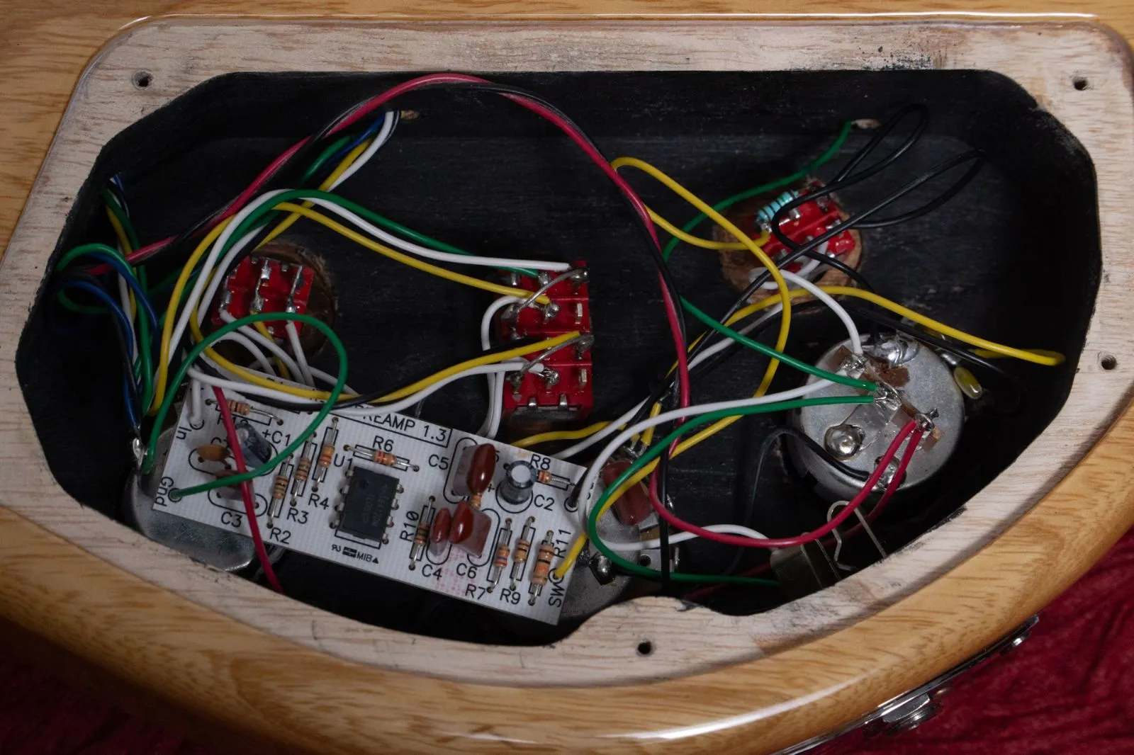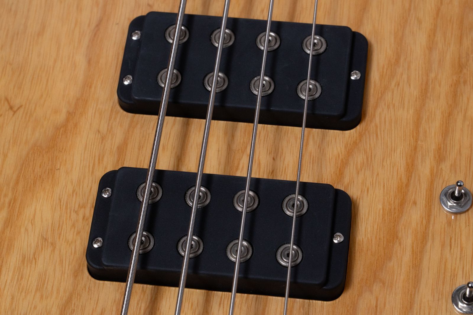 PUの切り替えはもちろん、配線やプリアンプのバイパスなど、ミニスイッチによってあらゆる調整が可能な点はG&Lだからこそ。