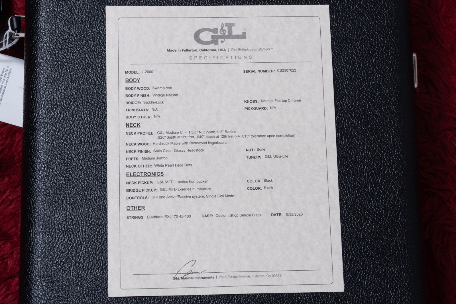 【outlet】G&L / Custom Shop L-2000 Vintage Natural RW 4.155kg #CS2307022【GIB横浜】