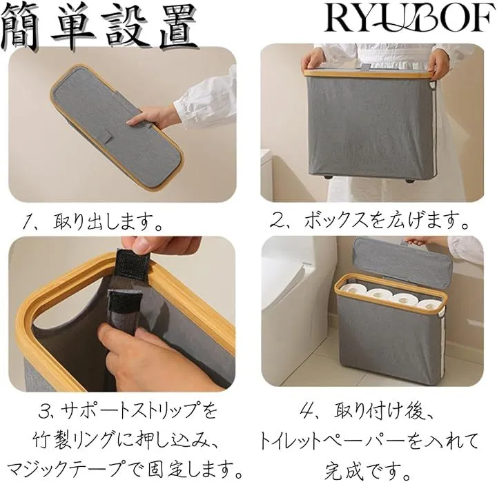 Ryubof トイレットペーパー 収納 蓋付き ストッカー ケース スリム 12ロール収納 トイレ収納ボックス 北欧風 おしゃれ トイレットペーパー置き すき間収納 26L 大容量 (グレー, ワンサイズ)