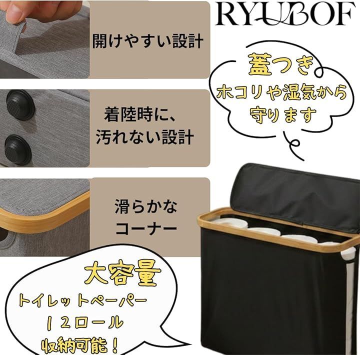 Ryubof トイレットペーパー 収納 蓋付き ストッカー ケース スリム 12ロール収納 トイレ収納ボックス 北欧風 おしゃれ トイレットペーパー置き すき間収納 26L 大容量 (オフホワイト, ワンサイズ)