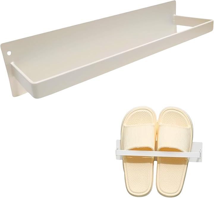 ABILEAD スリッパラック マグネット式 玄関ドア 壁掛け 収納 省スペース 磁石 穴あけ不要 工事不要 賃貸対応 スチール おしゃれ シンプル (ホワイト, 25cm x 6cm)
