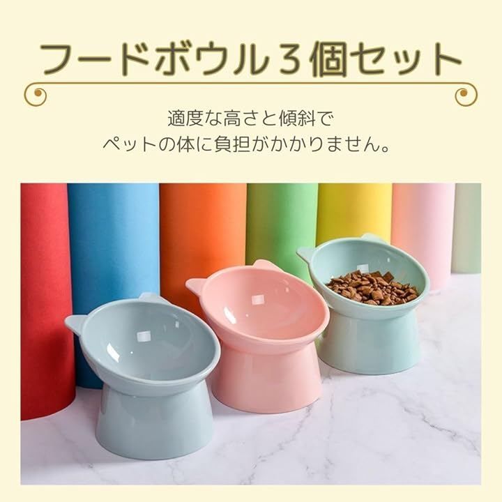 Aseren ペット フード ボウル 食器 餌 お水 入れ 皿 3色 セット 犬 猫 食べやすい 斜め (ピンク ブルー グリーン)