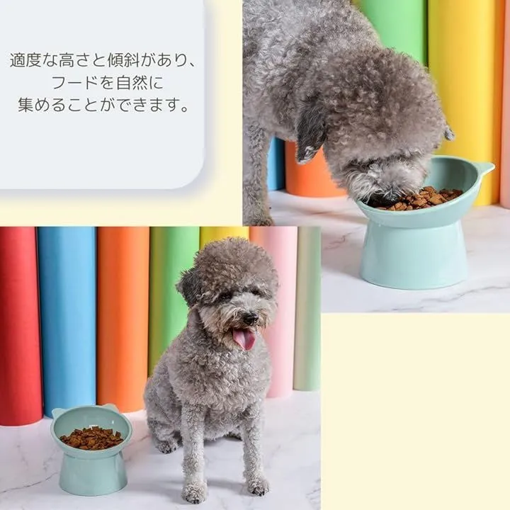 「食べやすい」このフードボウルは適度な高さと傾斜があり、フードを自然に集めることができてペットは自然な姿勢で餌を食べることができます。